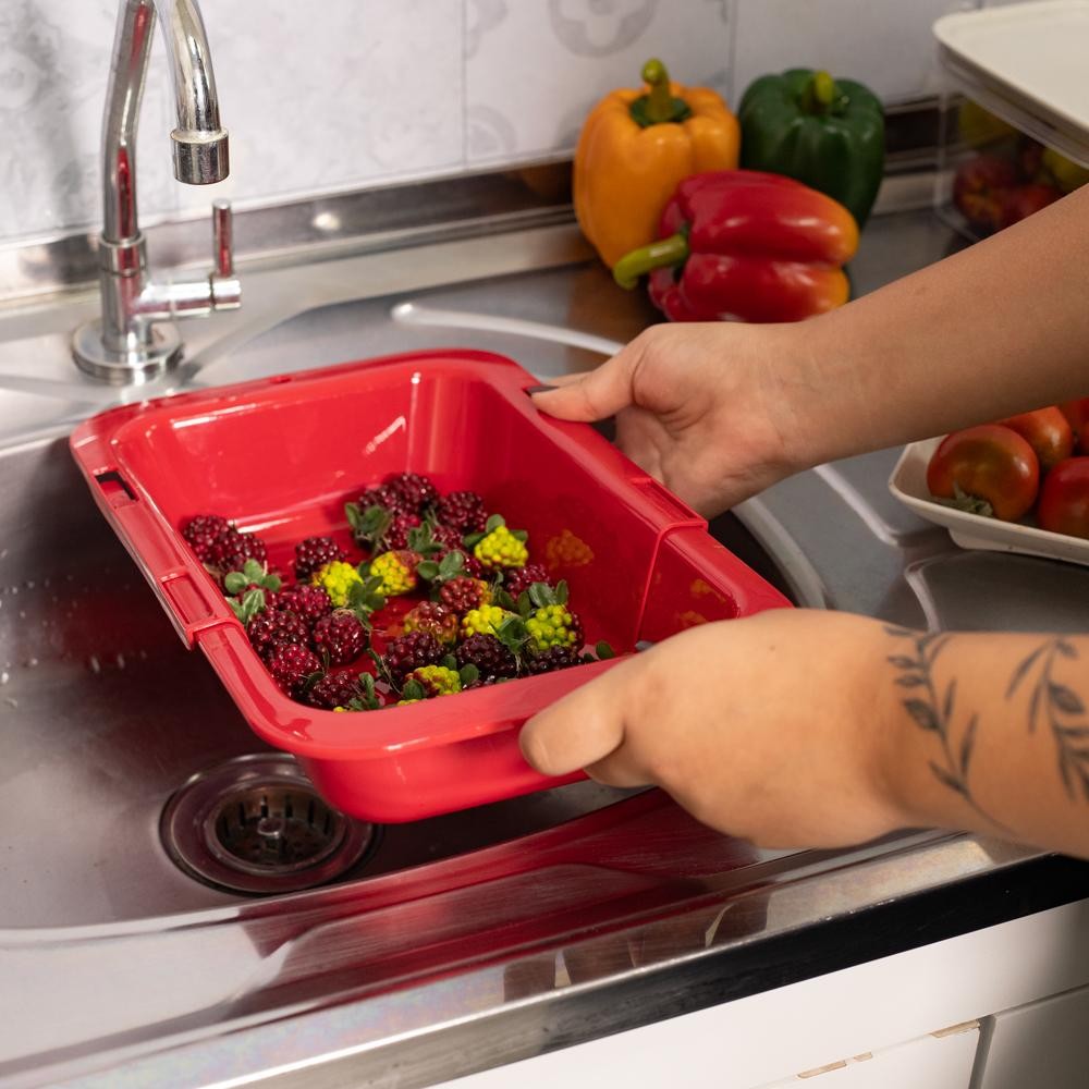 Escorredor de Pia Ajustável Retrátil Vermelho Plasútil