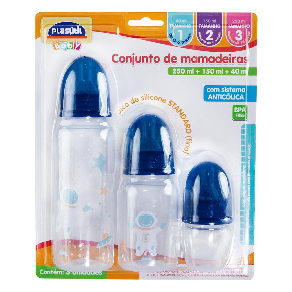 Kit 3 Mamadeira Bico Padrão 40,150,250ml Astronauta Plasutil