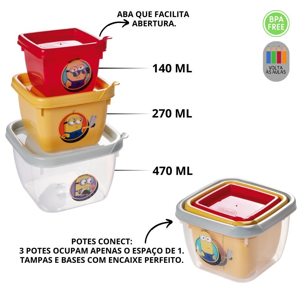 Kit Lancheira Meu Malvado Favorito Minions Volta às Aulas 5 Peças Plasútil