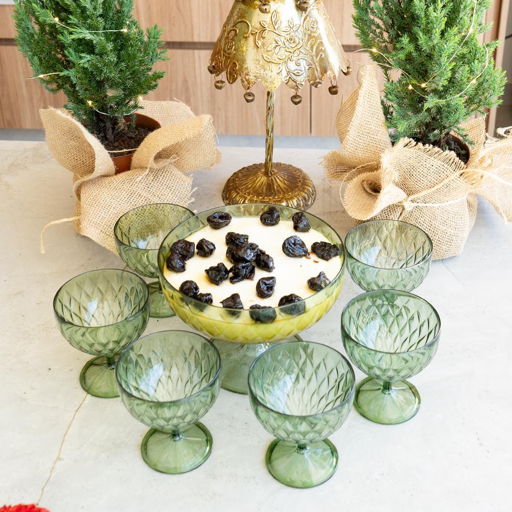 Kit Natal Sobremesa 1 Taça Grande 6 Taças Pequenas Glamour Verde 7 Peças Plasútil