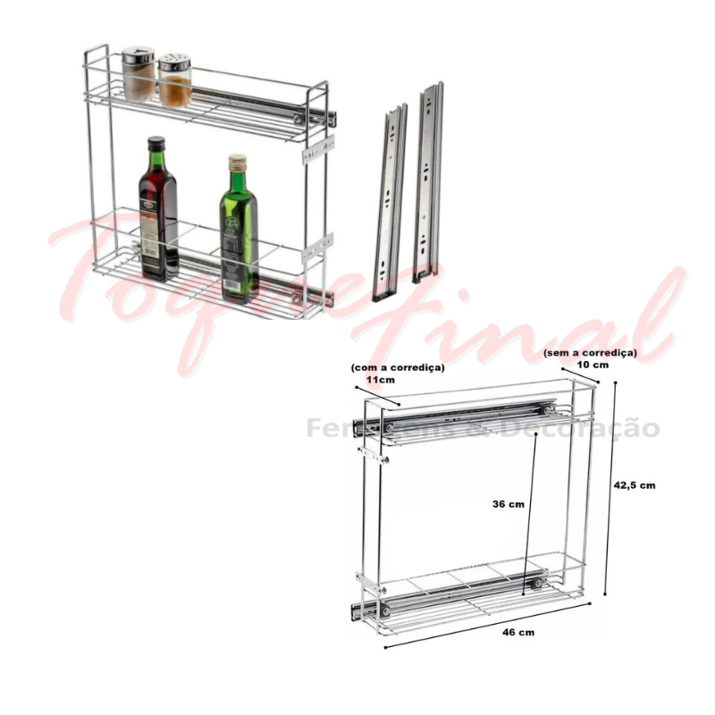 Porta Tempero Latas/óleo Duplo Corrediça Jomer 100x440x450mm 0761 Porta Condimentos
