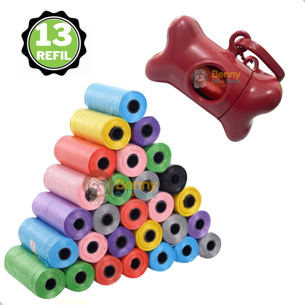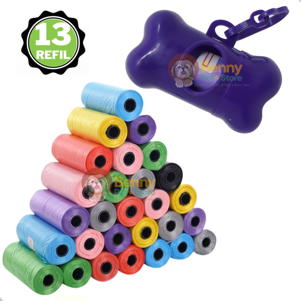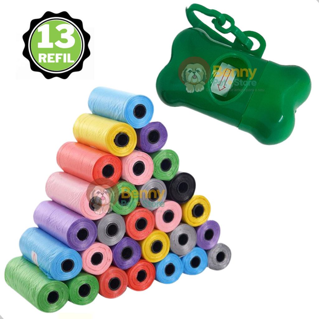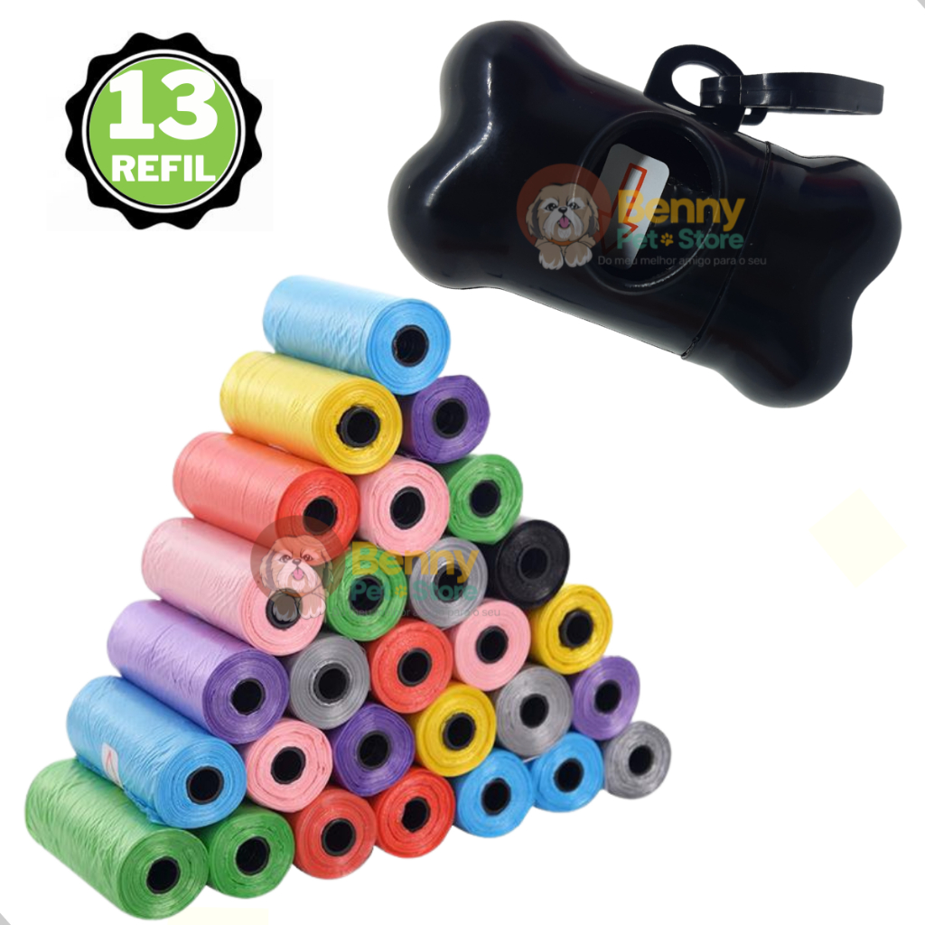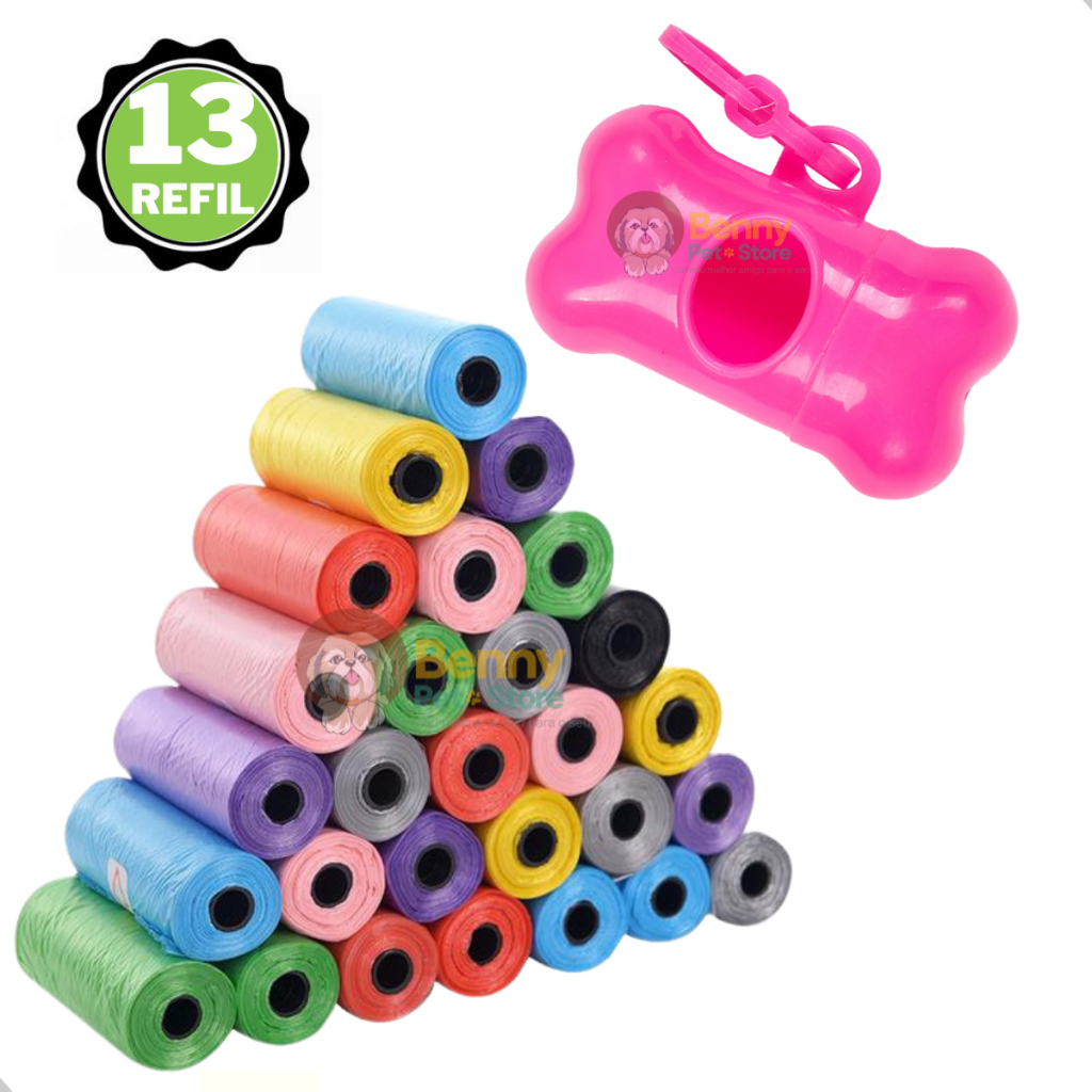 Kit 13 Rolinhos Refil Cata Caca Higienico e 1 Suporte Pet