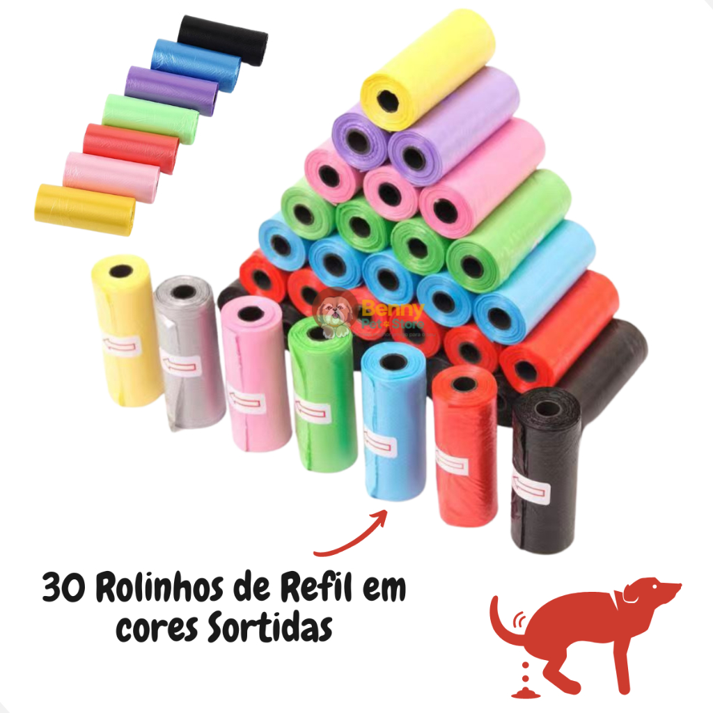 Kit 450 Saquinhos Refil Cata Caca Higiênico Pet 30 rolinhos