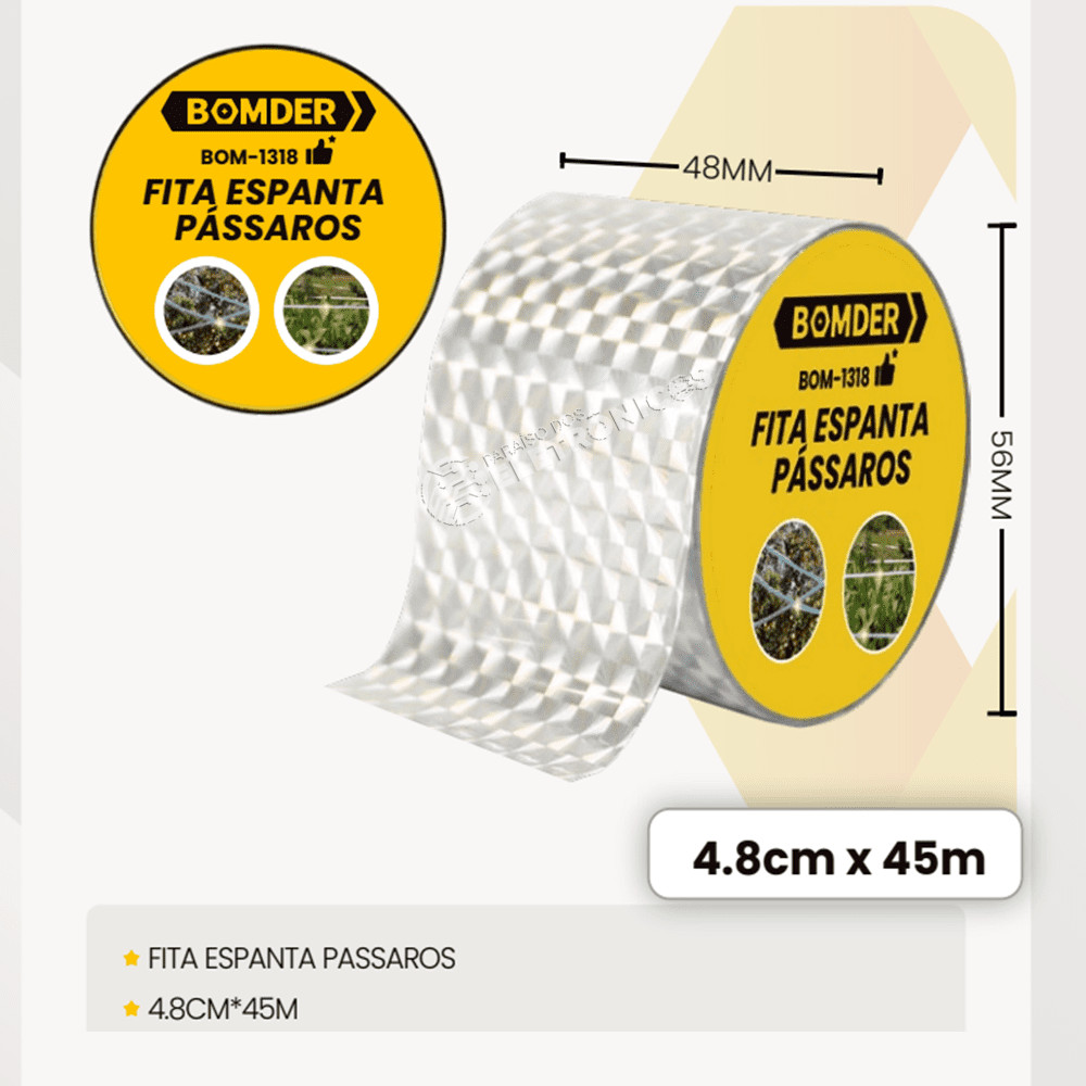 Fita Refletiva Espanta Pássaros Pombo Aves 45 Metros Jardim Eficiente BOM1318