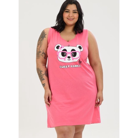 Regatão Feminino Plus Size de Algodão Sweet Panda