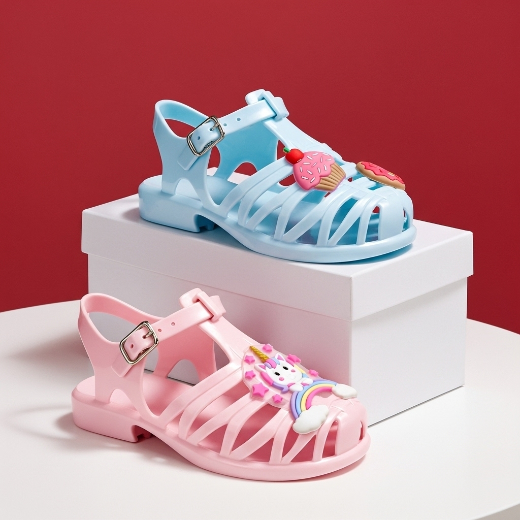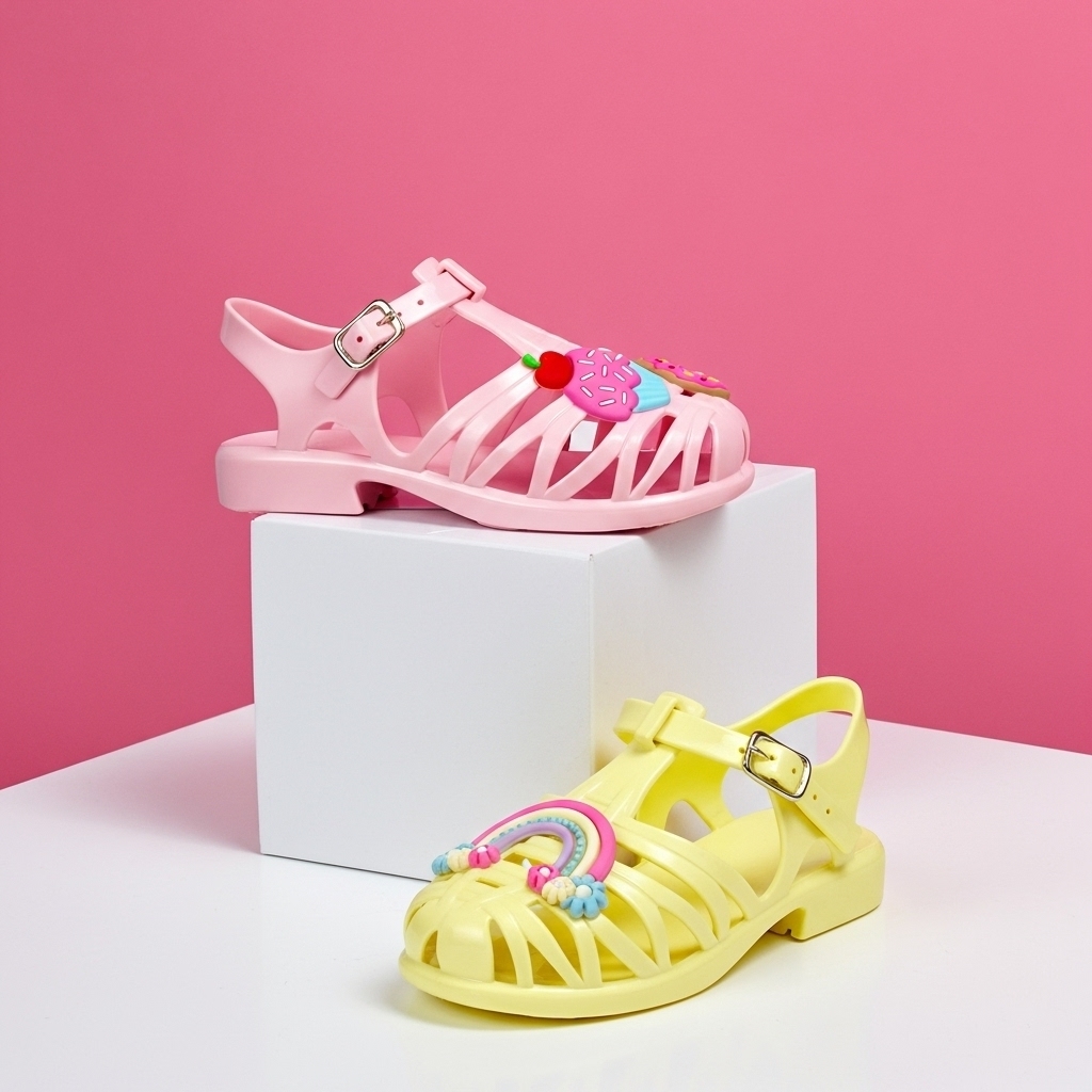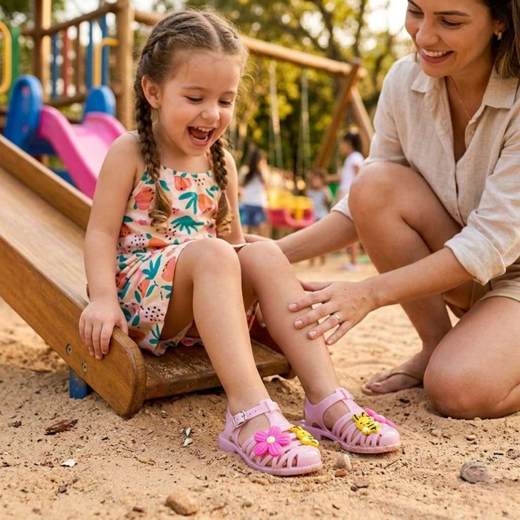 Kit 2 Sandália Infantil Menina Estampada Delicada Confortável e Flexível Verão