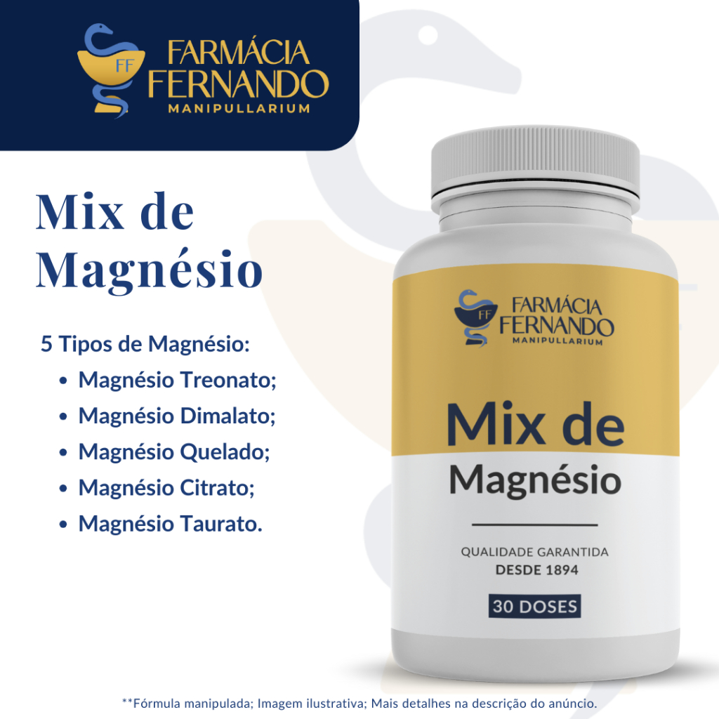 Magnésio Mix 30 doses - Treonato Dimalato Quelato Citrato Taurato