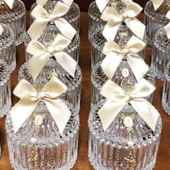 50 Laços para Mini Bomboniere Lembrancinha Vidro Acrílico Cristal Laço Bomboniere de Vidro Baleiro