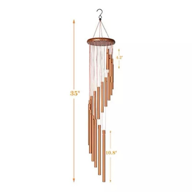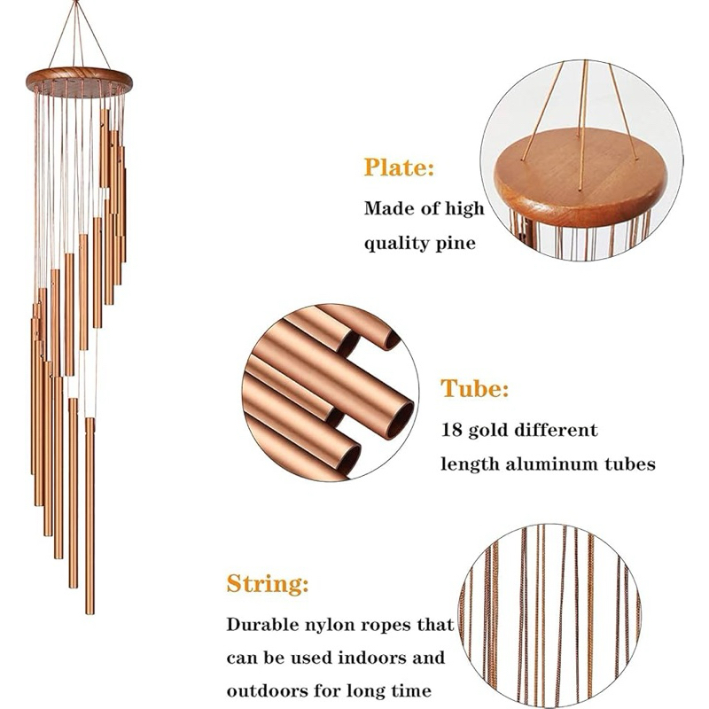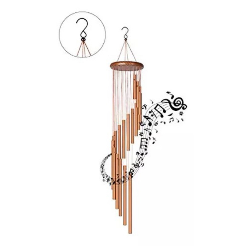 Sino dos Ventos de Metal 18 Tubos Bronze Decoração de Casa