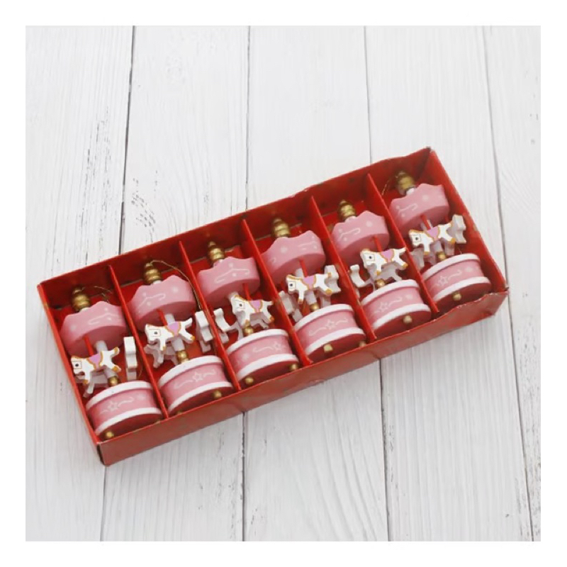 Kit 6 Mini Carrossel de Madeira Colorido Decorativo 8cm