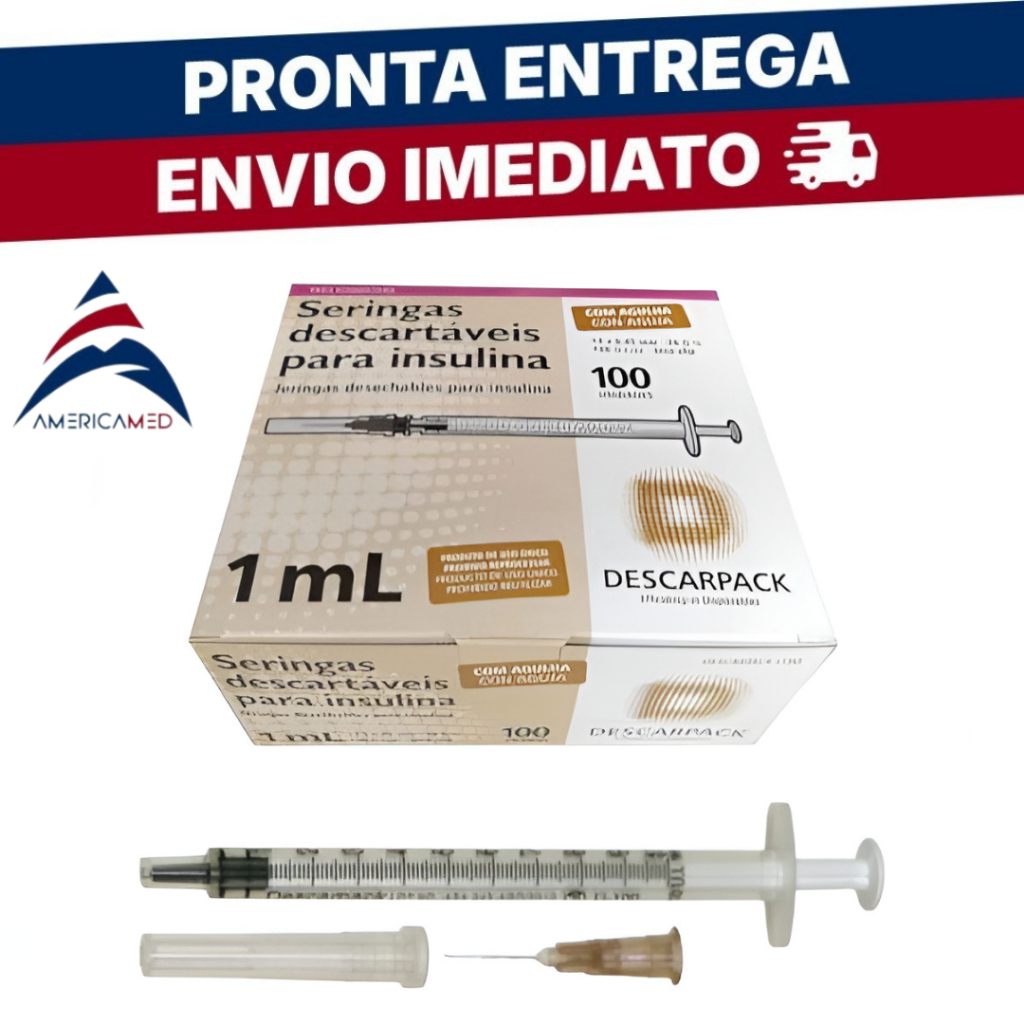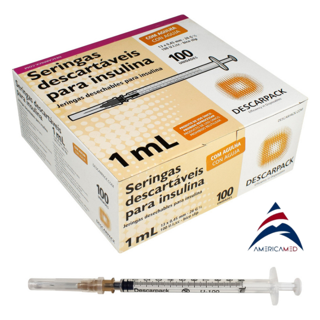 Seringa Insulina 1ml com Agulha 13x0,45mm – Caixa com 100 Unidades – Descarpack