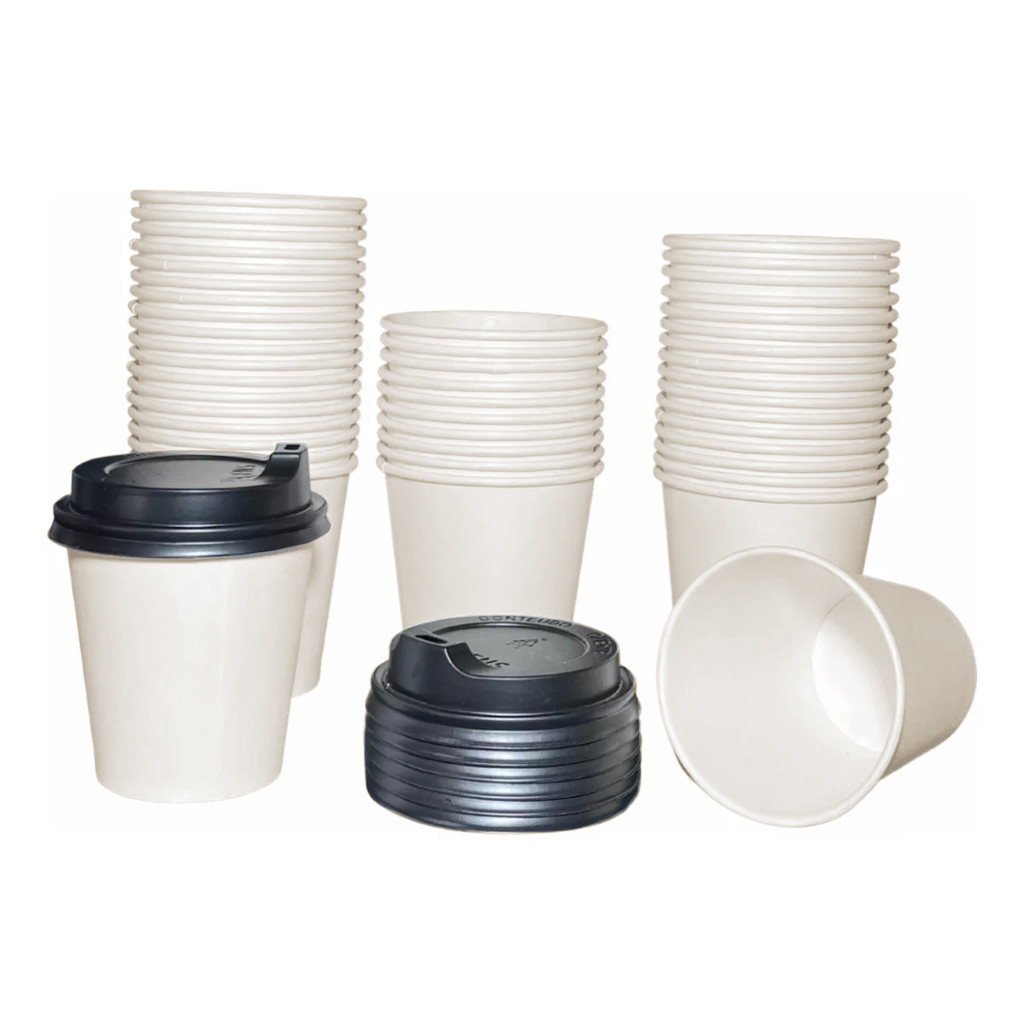 Copo Papel Branco 200ml C/ Tampa Biodegradável 100un Térmico