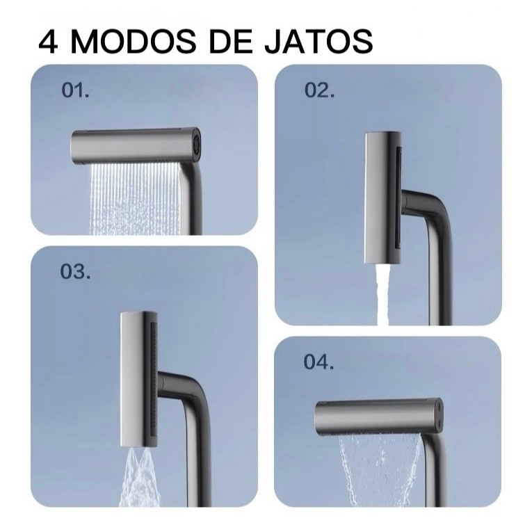 Torneira Cozinha Giratório 360 graus - 4 Modos de Jato na cor preta