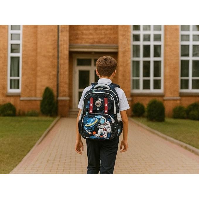 Mochila Infantil Escolar Astronauta Ortopédica Menino Menina Cor Azul, Verde, Preta + CHAVEIRO