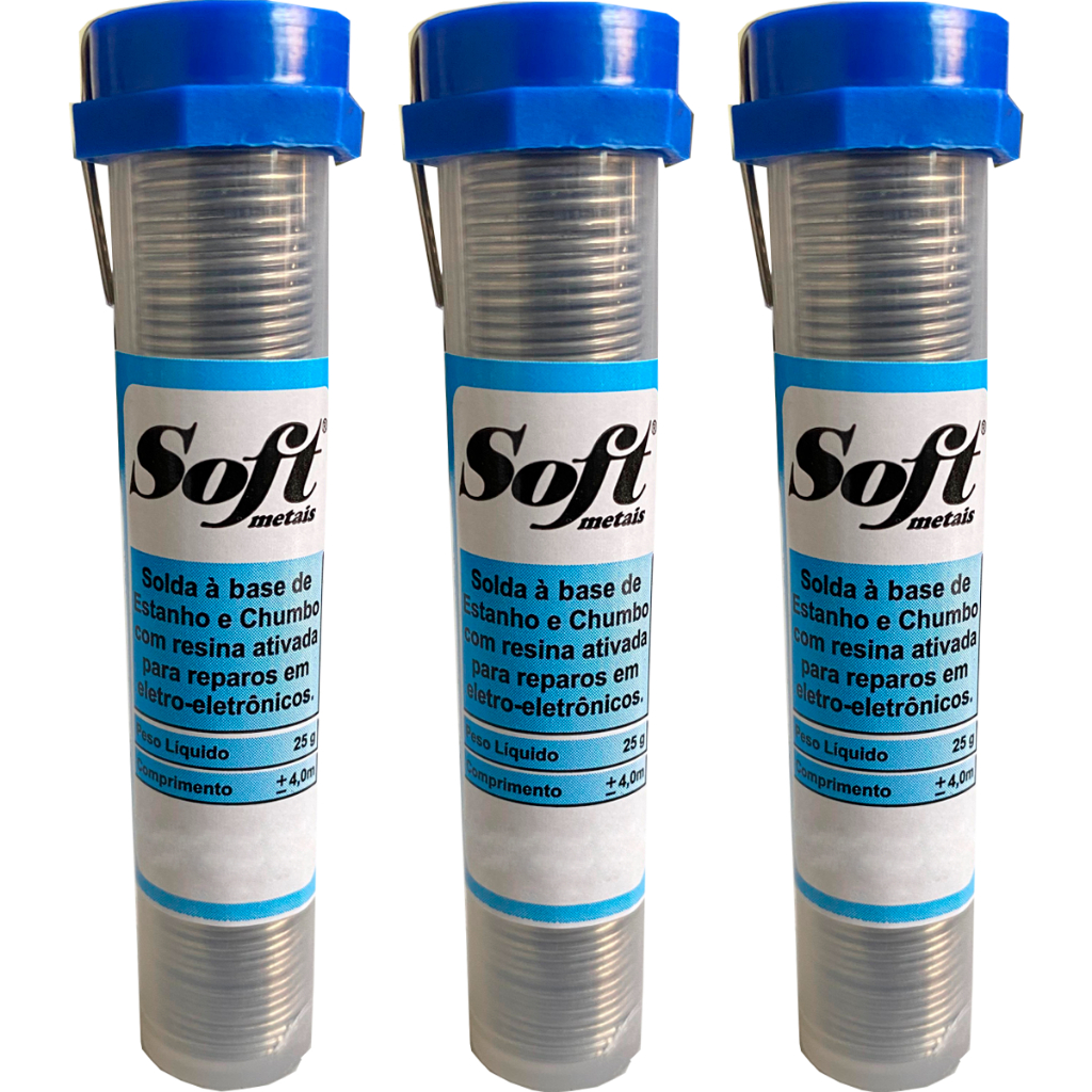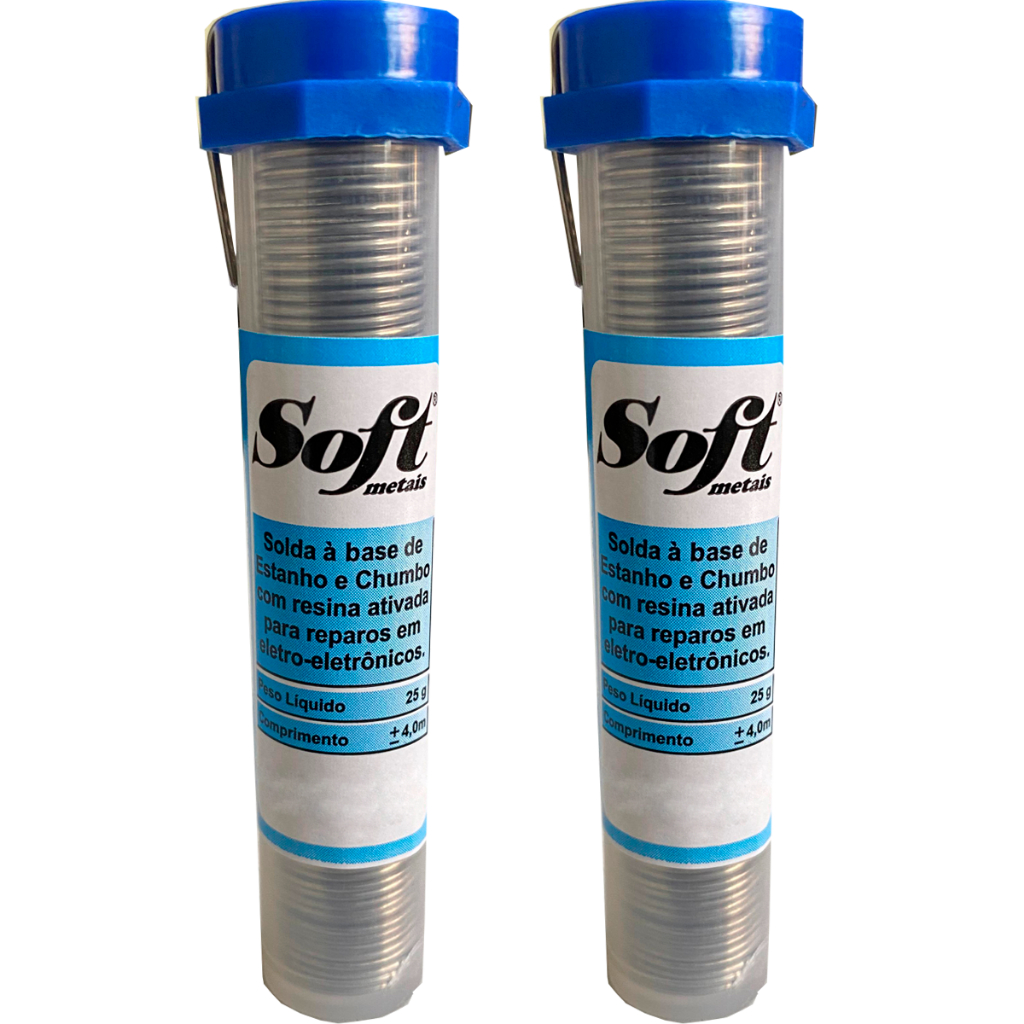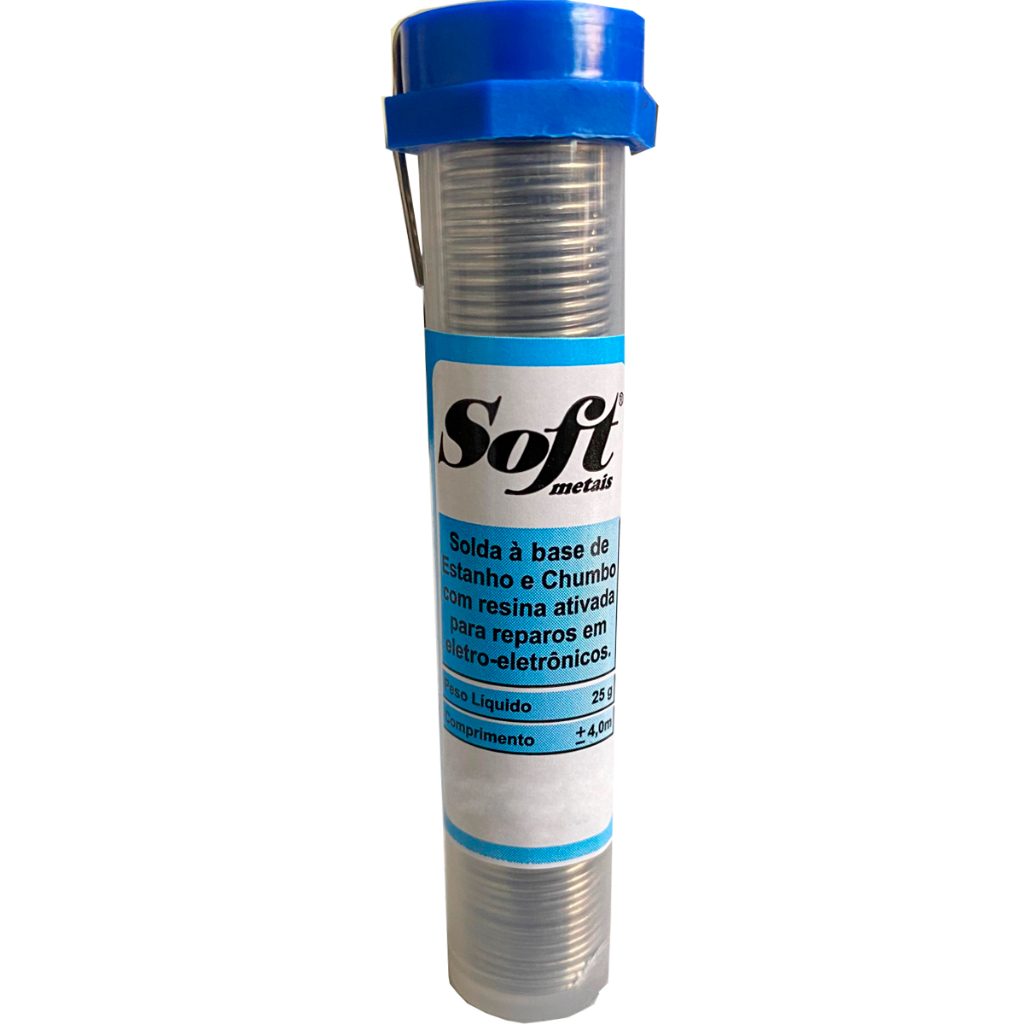 Tubos Solda Estanho 4mts/25g 1mm 60x40 1.0mm C/ Fluxo - Soft Azul