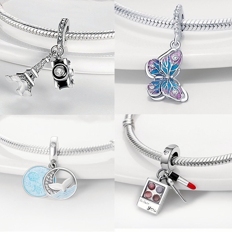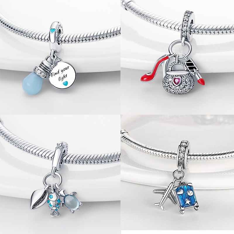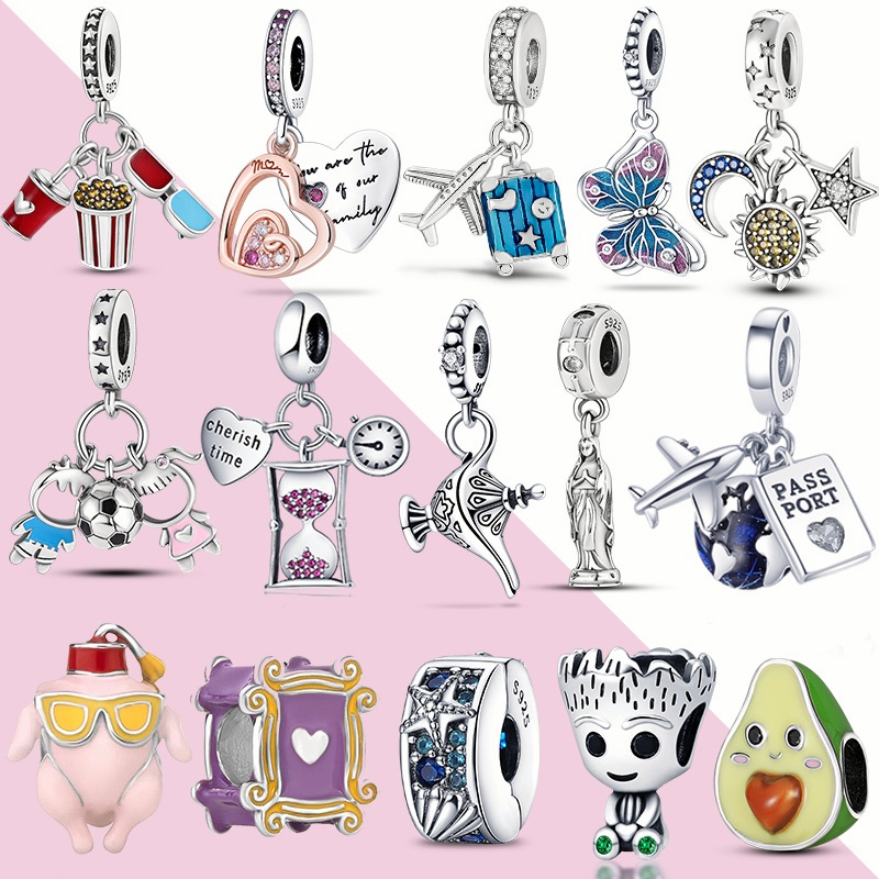 Mais Vendido Venda Quente 100 % 925 Prata Esterlina Avião Passaporte E Mala Contas Encantos Caber Marca Original Pulseira Fazendo Jóias Femininas