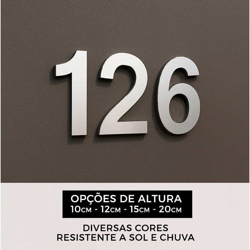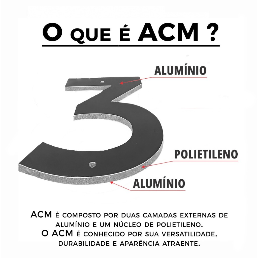 Kit com 3 números para casas, empresas, em ACM 10, 12, 15 e 20cm de altura