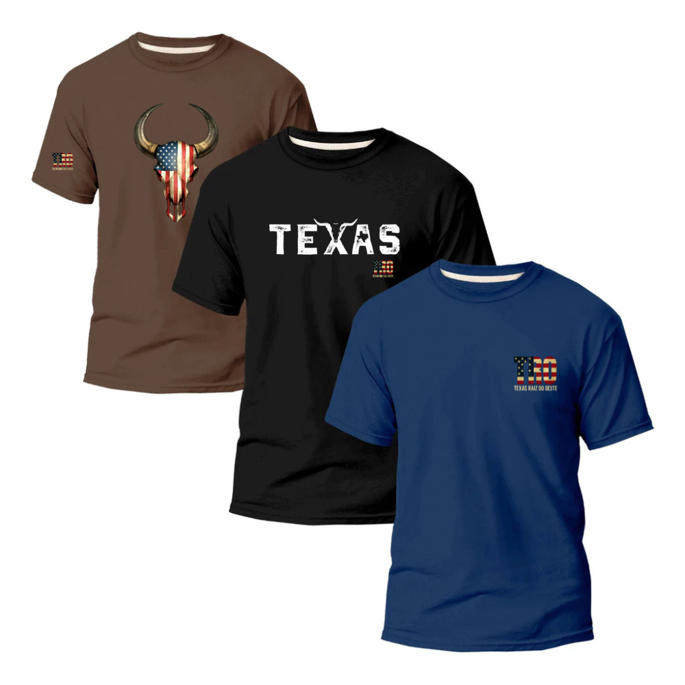 Kit 3 Camisetas Country Texas Raiz do Oeste Premium Várias Cores Envio Rápido