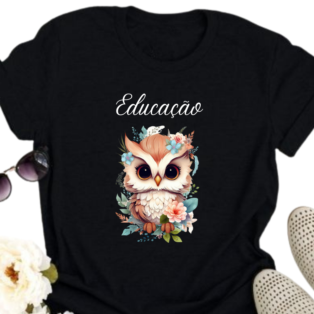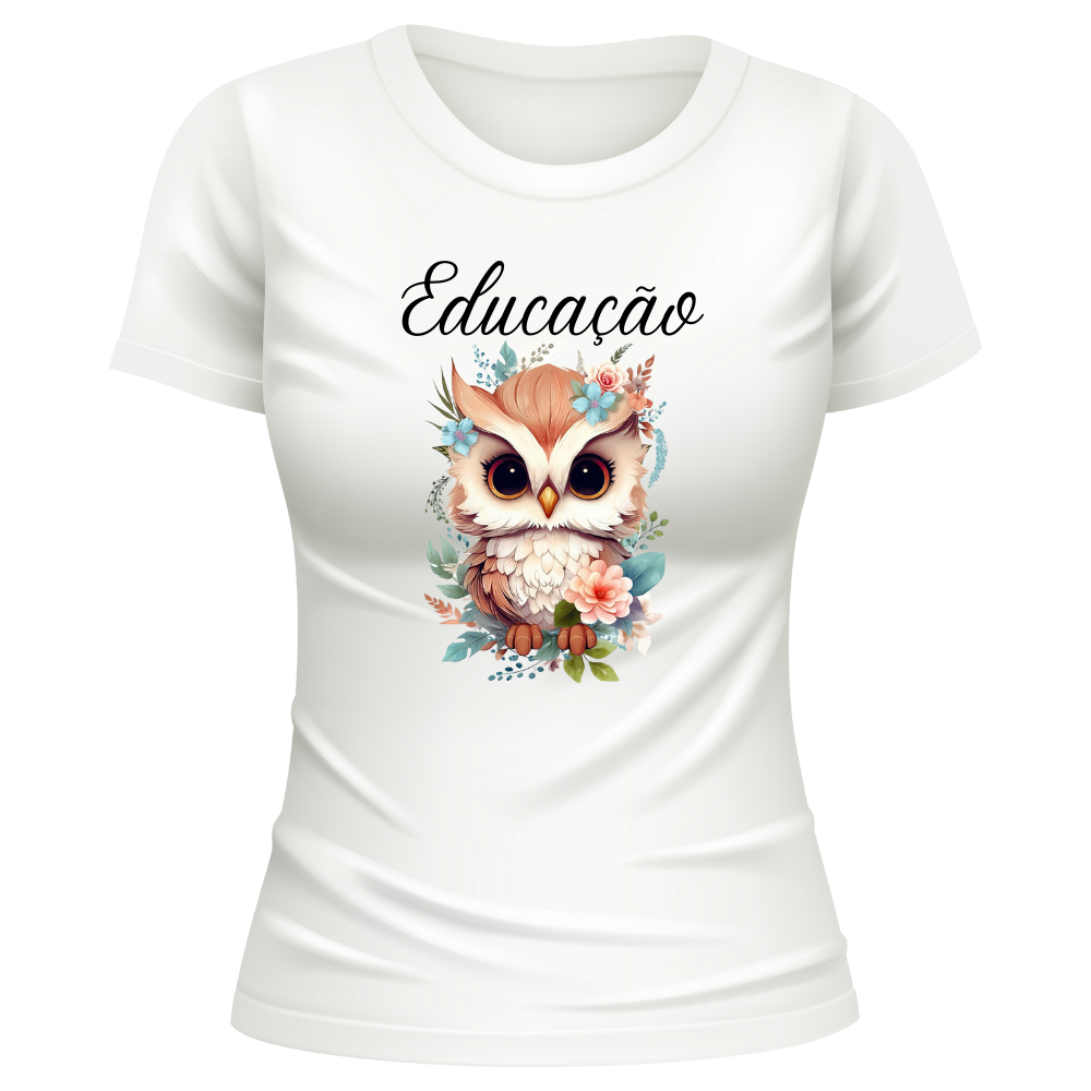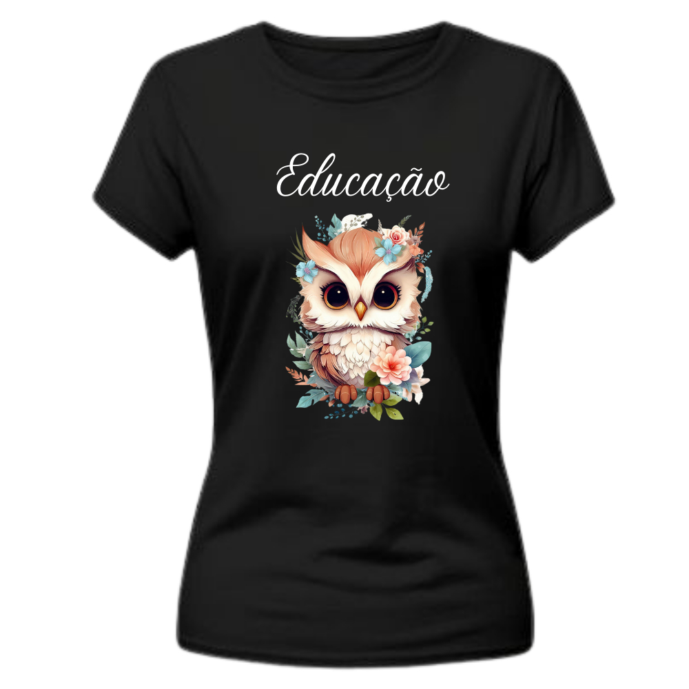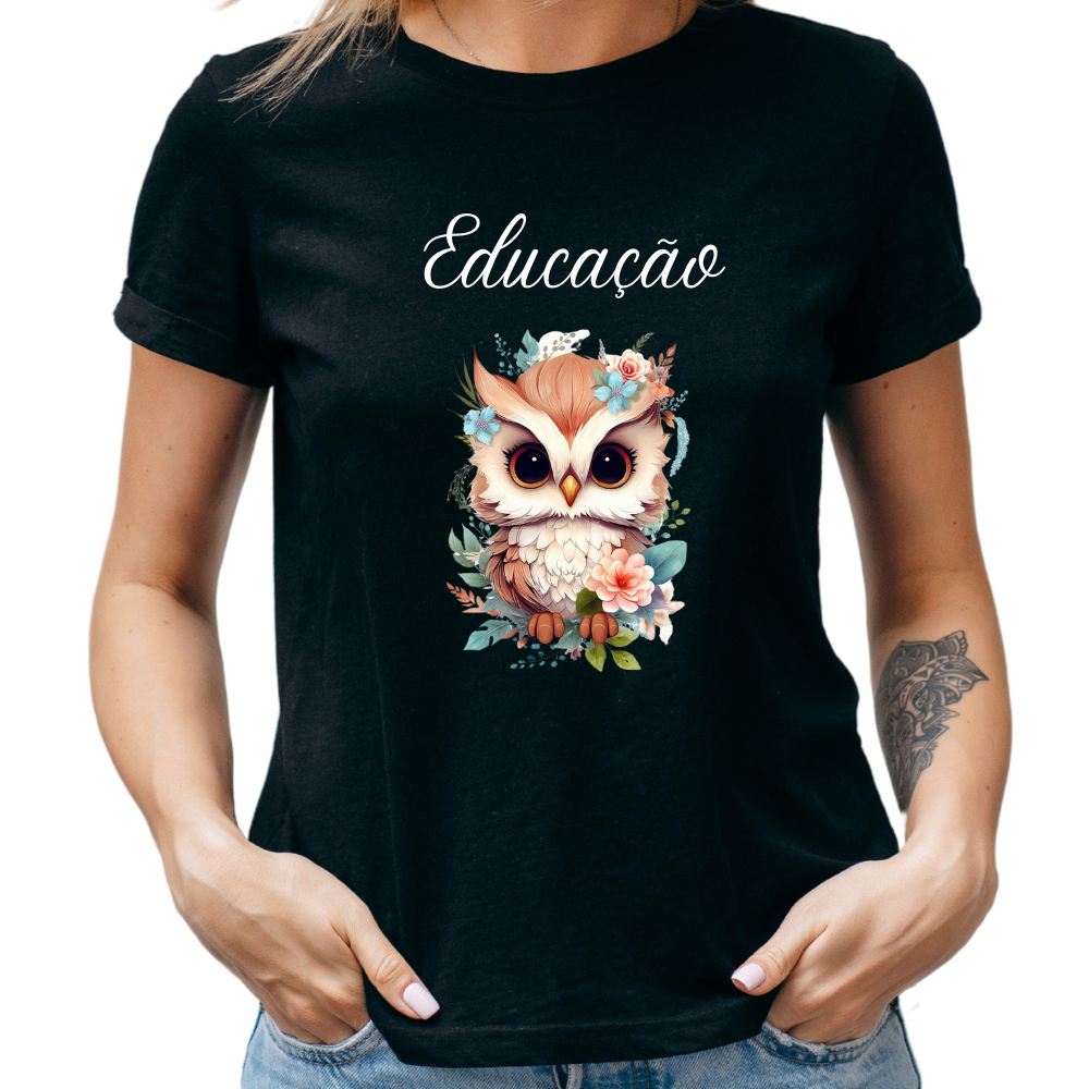 Camiseta Blusa T Shirt Feminina Estampada Coruja Profissão Professora Educação Pedagogia