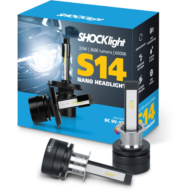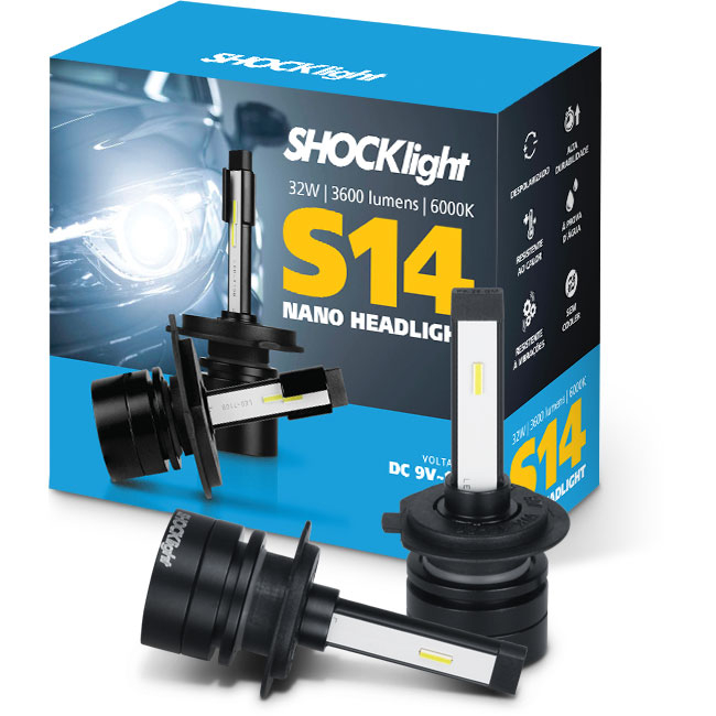 Lâmpada Super Led Shocklight S14 Nano Headlight H1 H3 H4 H7 H8 H9 H11 H16 H27 HB3 HB4 6000K 12V 32W 3600Lm
