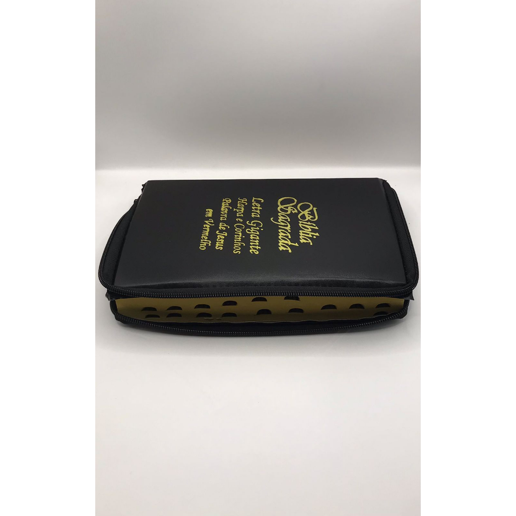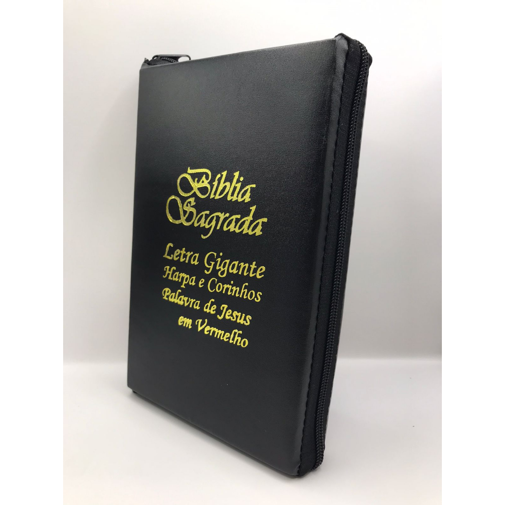 Bíblia Sagrada Tamanho Grande com Harpa Palavras de Jesus em Vermelho com Zíper Preto