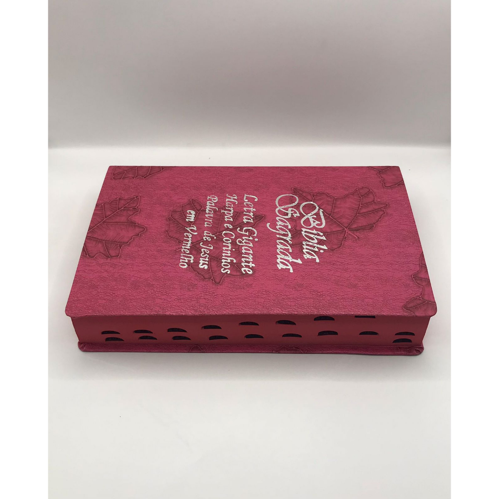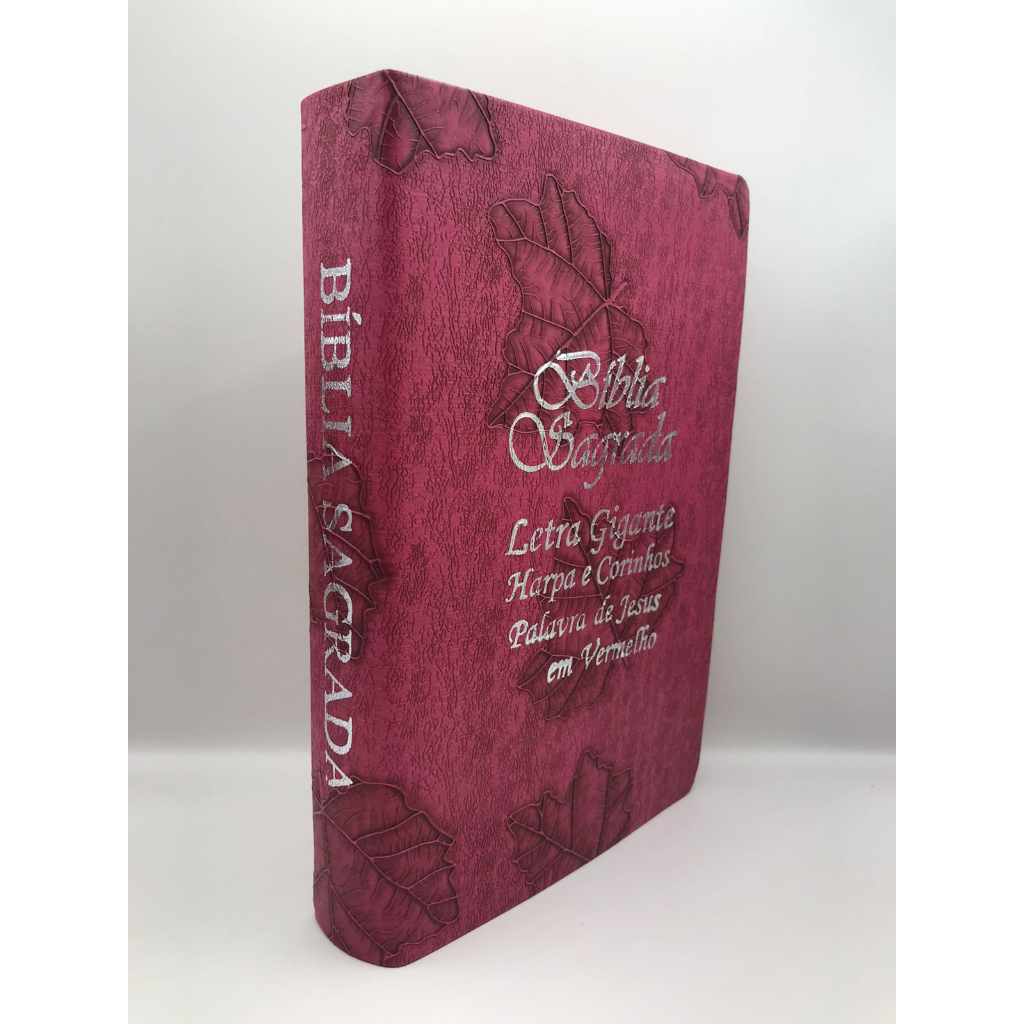 Bíblia Sagrada Tamanho Grande com Harpa Palavras de Jesus em Vermelho Capa Folha Pink