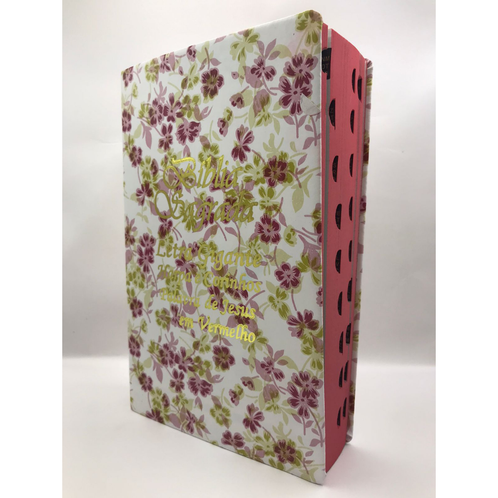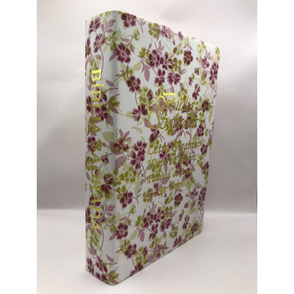Bíblia Sagrada Tamanho Grande com Harpa Palavras de Jesus em Vermelho Capa Flor Dourada