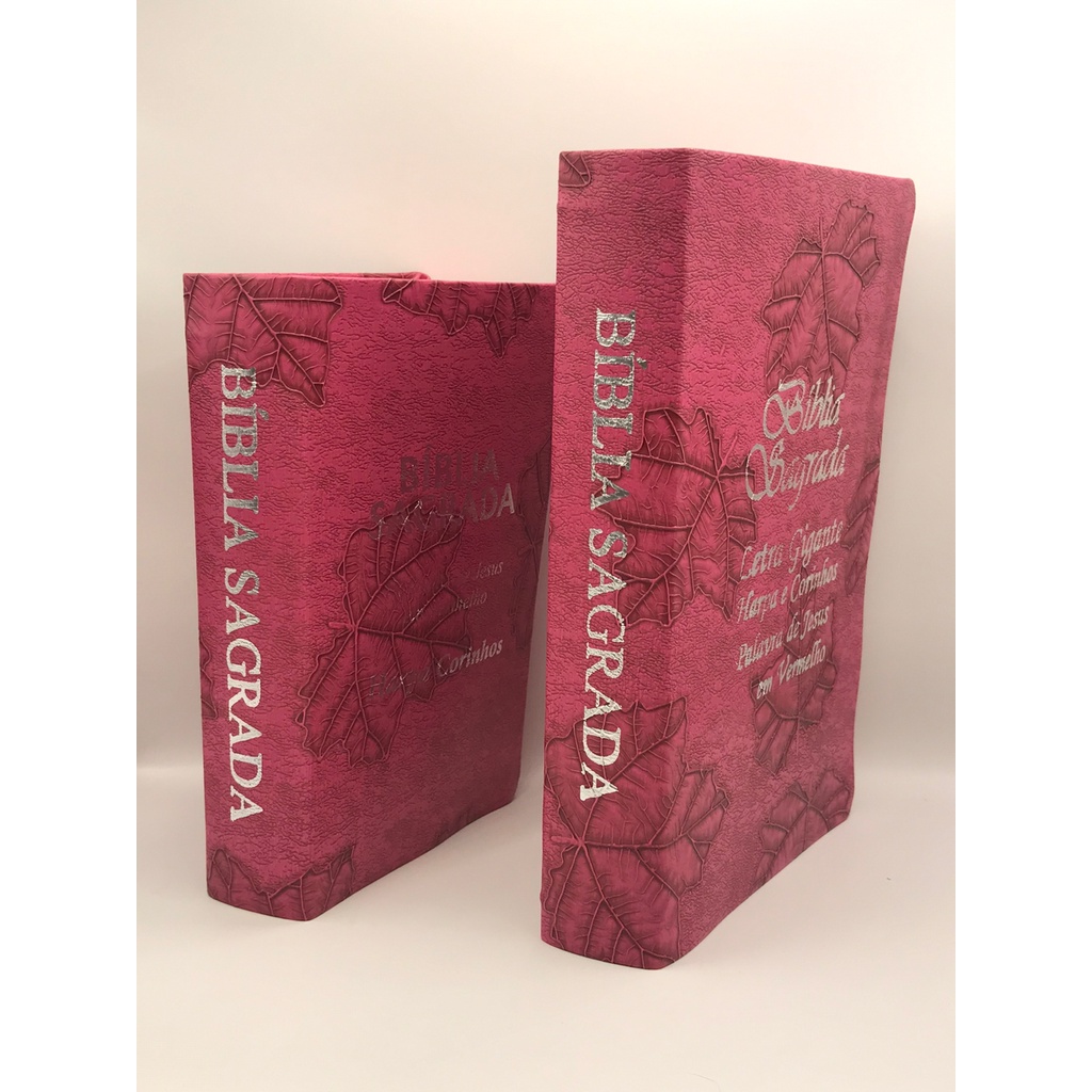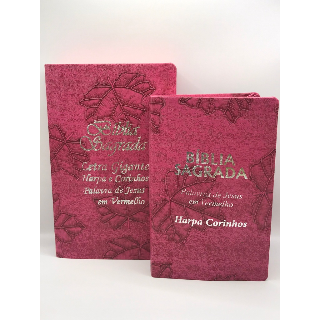 Kit 2 Bíblias Mãe e Filha Com Harpa e Palavras De Jesus Em Vermelho - Capa Folha Pink