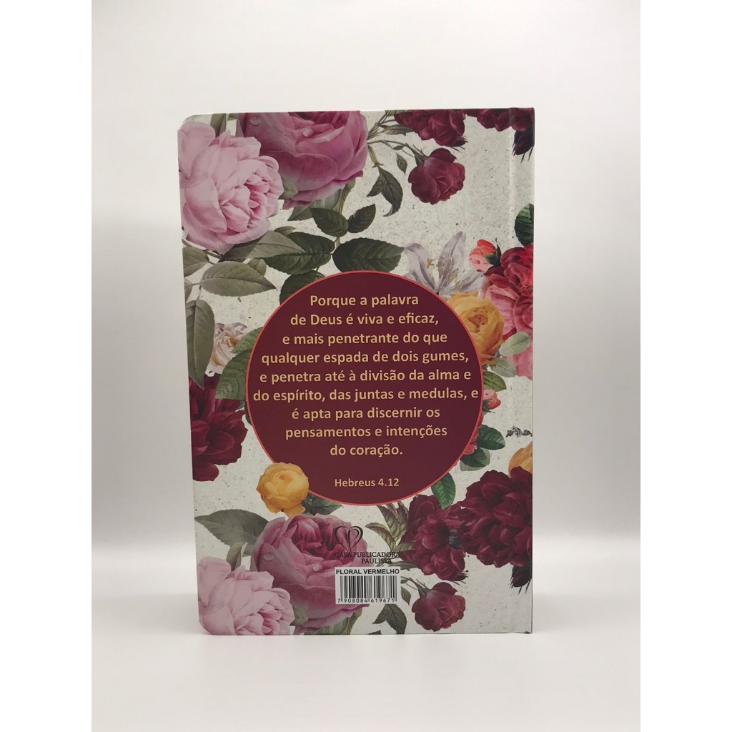 Bíblia Sagrada Tamanho Grande Com Harpa Palavras de Jesus em vermelho Floral Vermelho