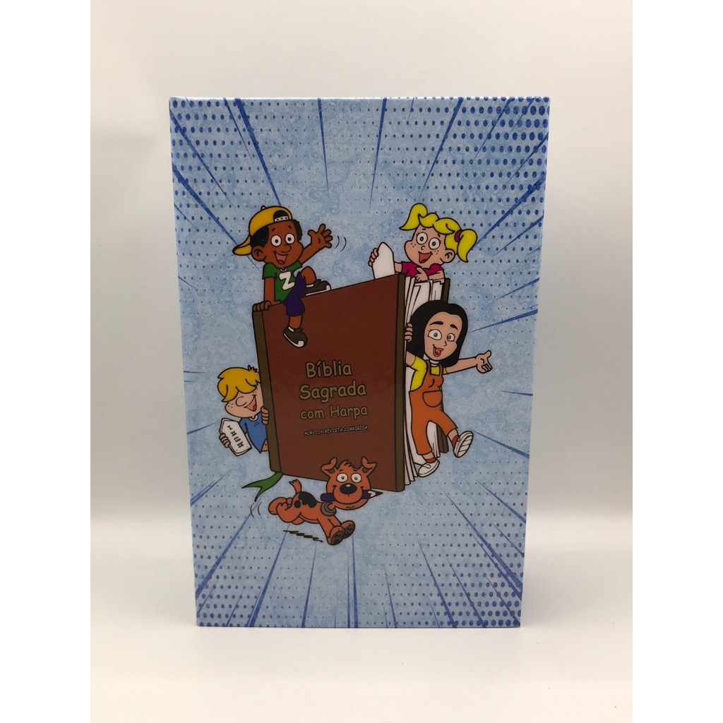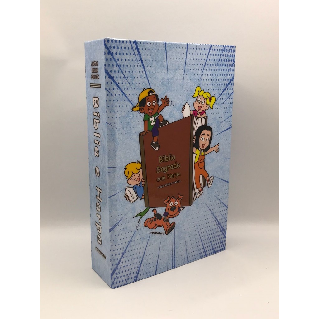 Bíblia Sagrada Tamanho médio 12,5x19 cm Com Harpa palavras de Jesus em Vermelho Crianças de Fé Masculino