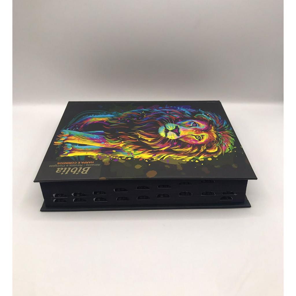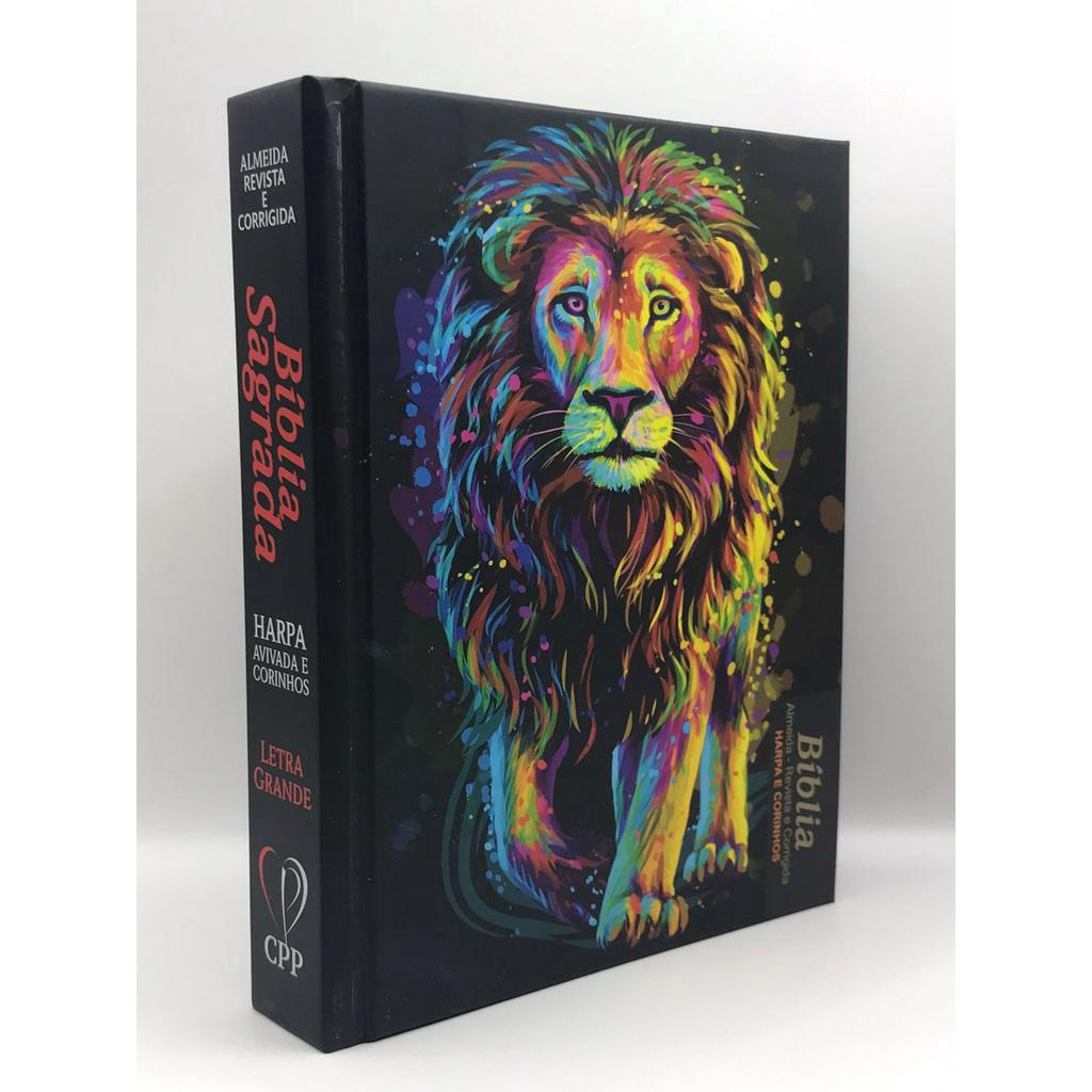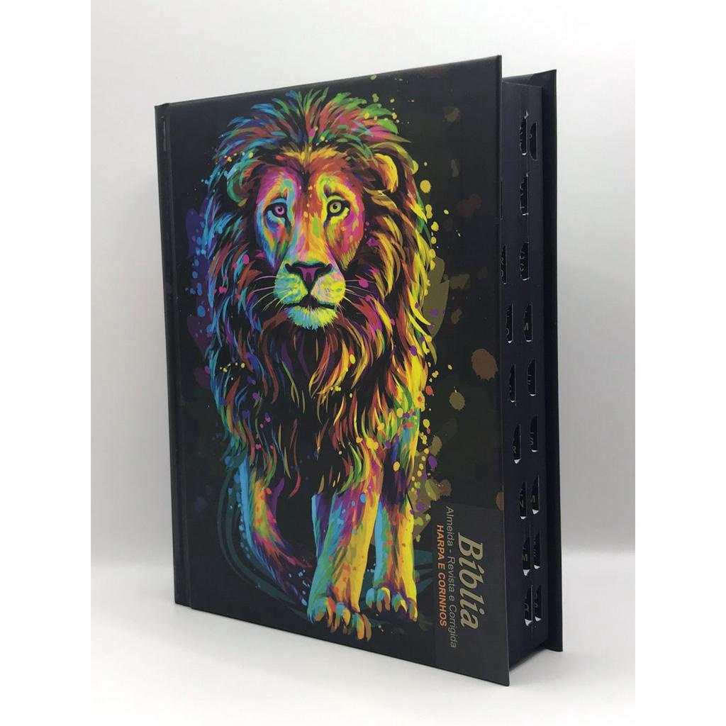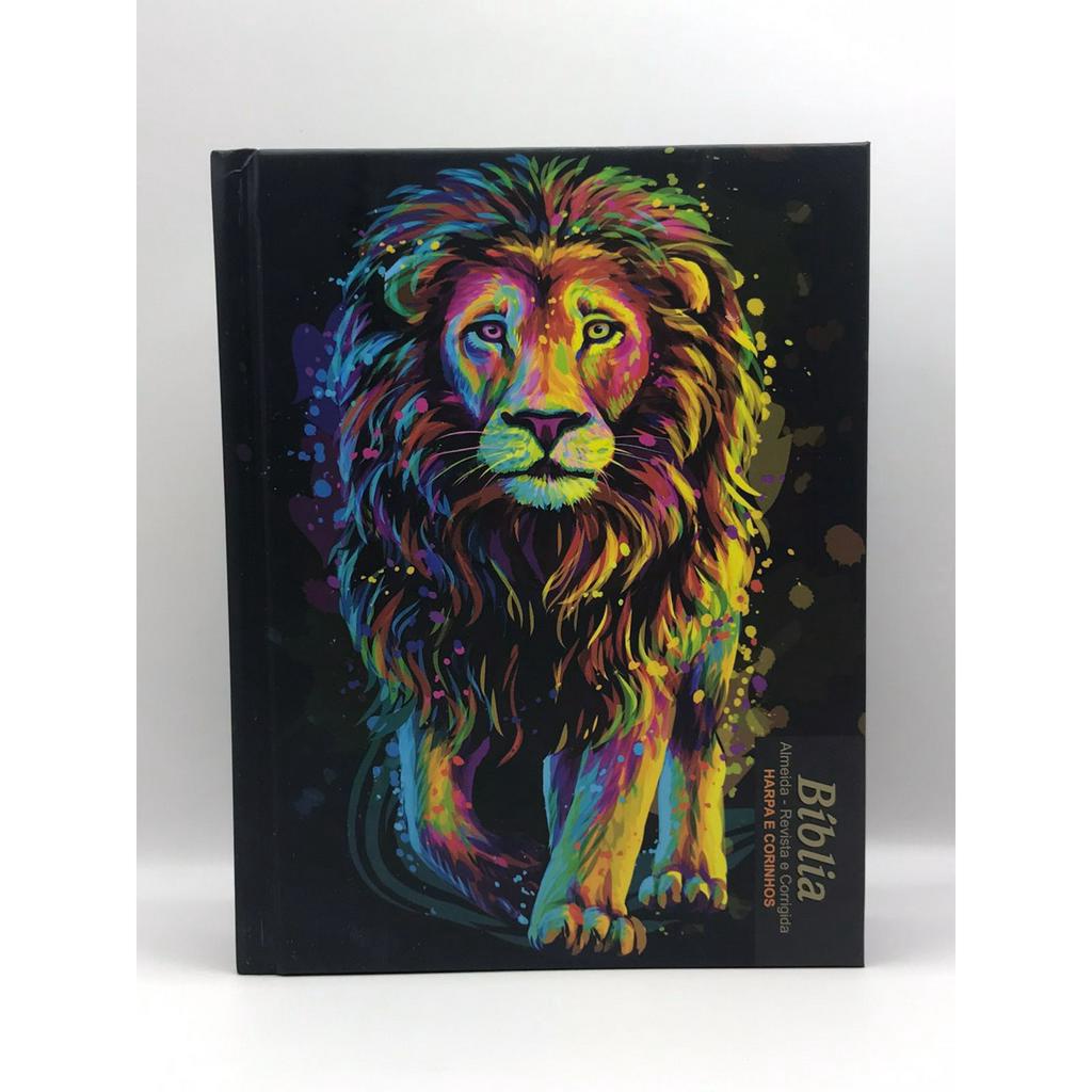 Bíblia Sagrada Tamanho Médio Com Harpa Revista e Corrigida Capa Dura Leão Inteiro Pintura