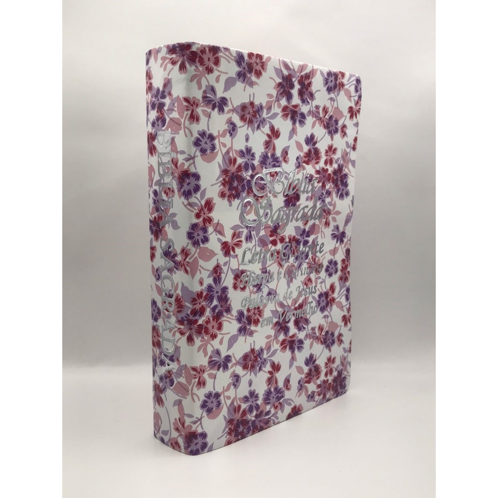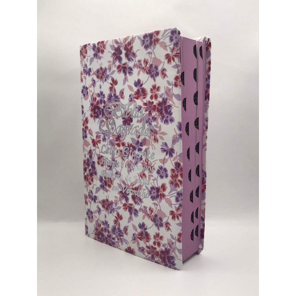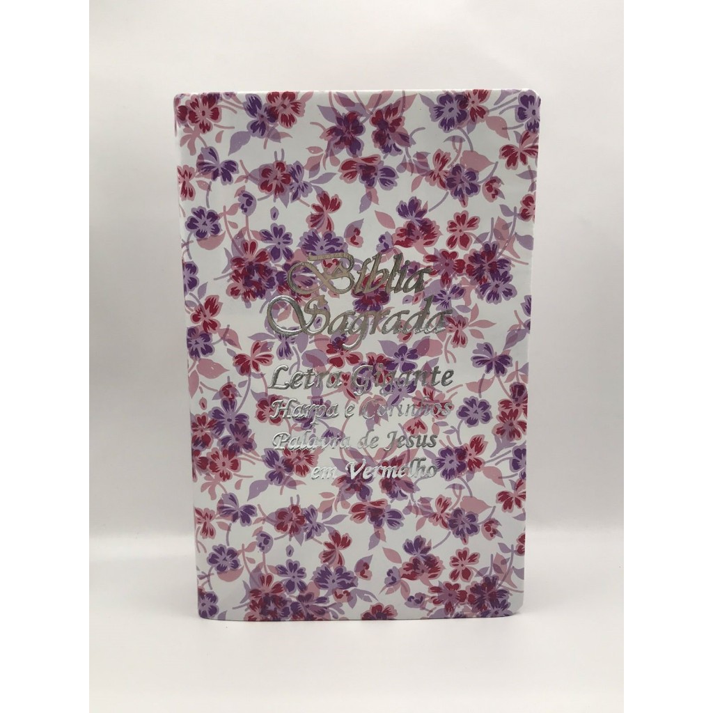 Bíblia Sagrada Tamanho Grande Com Harpa Palavras de Jesus em vermelho Florida Roxa