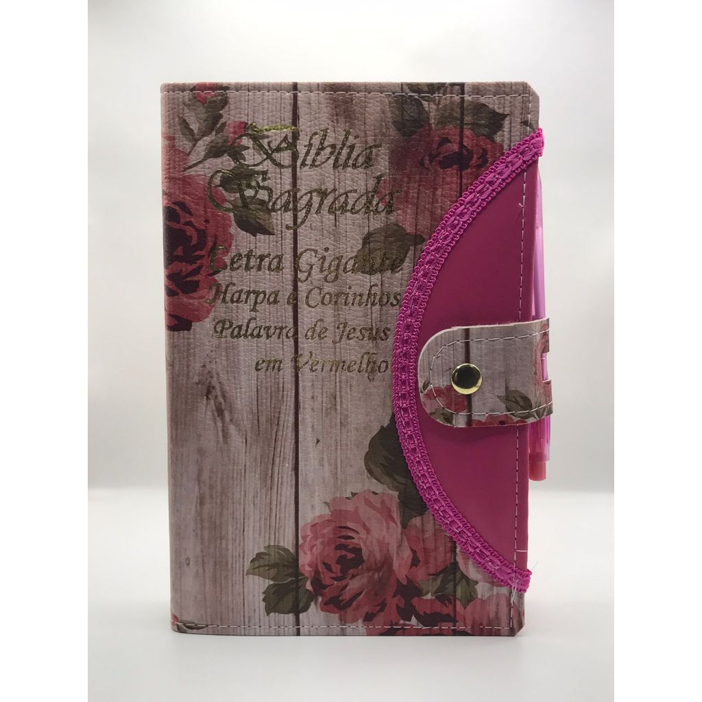 Bíblia Sagrada Tamanho Grande Com Harpa Palavras de Jesus em vermelho Botão Capa Romantic