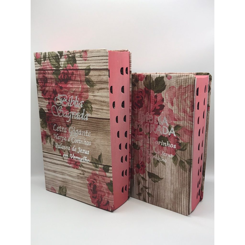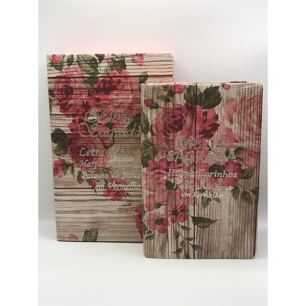 Kit 2 Bíblias Mãe e Filha Com Harpa e Palavras De Jesus Em Vermelho - Capa Romantic