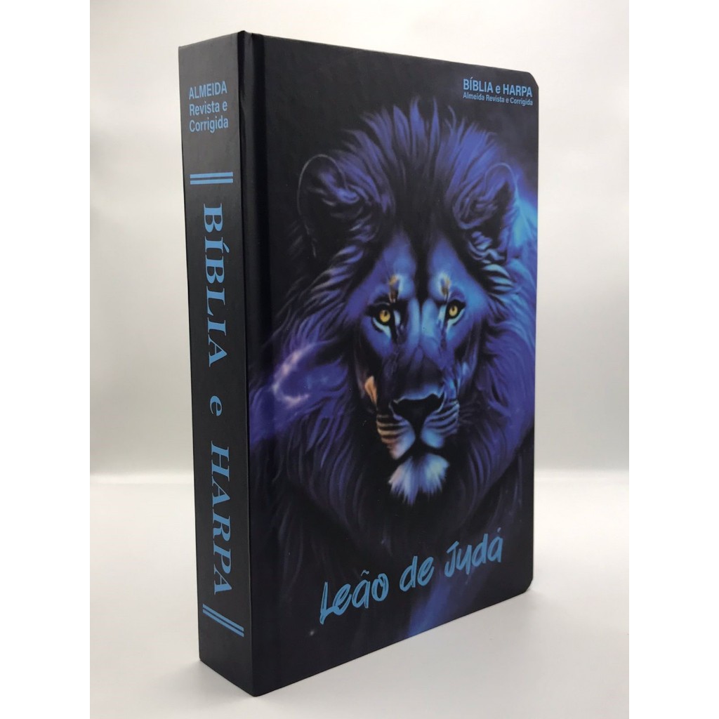 Bíblia Sagrada Tamanho Grande Com Harpa Palavras de Jesus em Vermelho Leão Azul