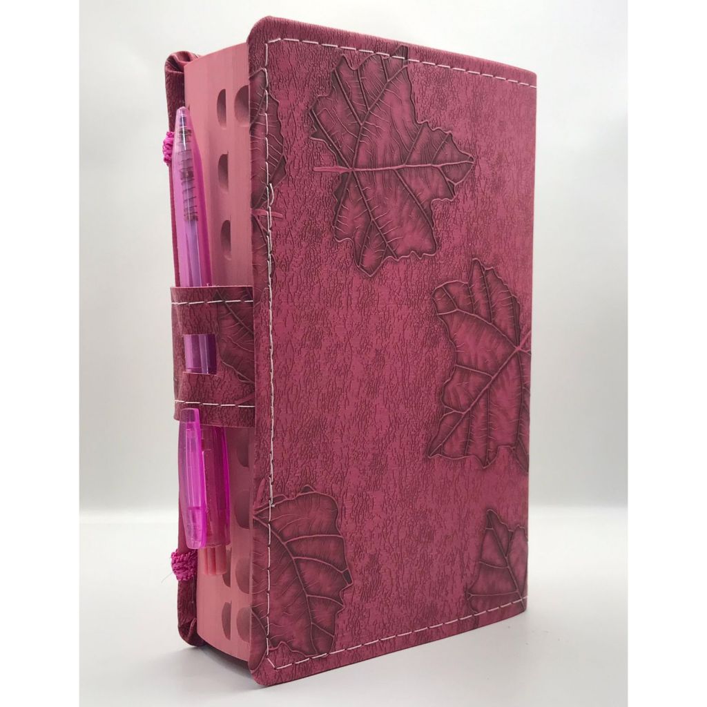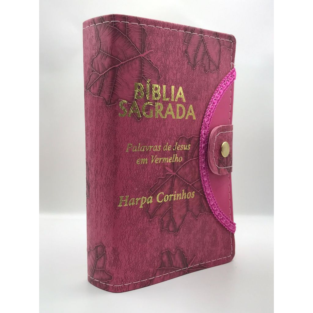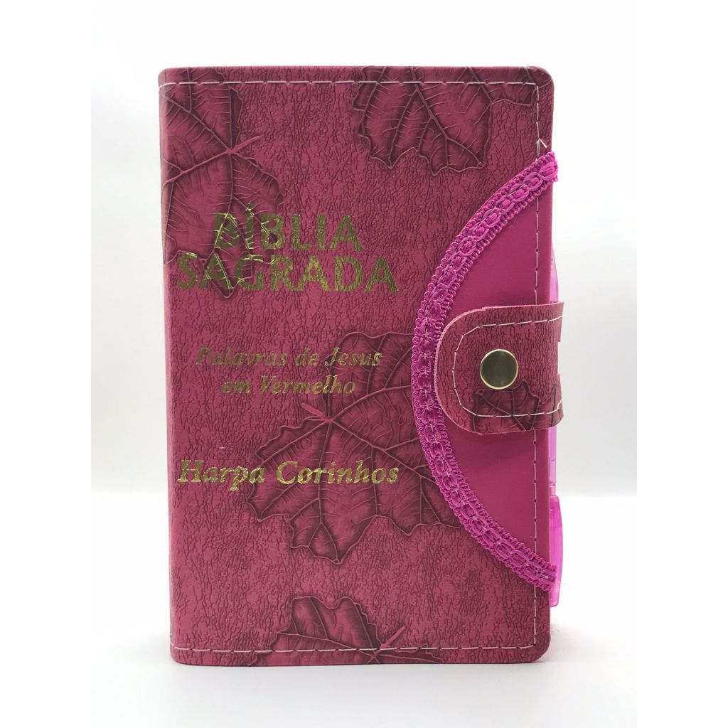 Bíblia Sagrada Tamanho médio 12,5x19 cm Com Harpa palavras de Jesus em vermelho Botão Capa Folha pink