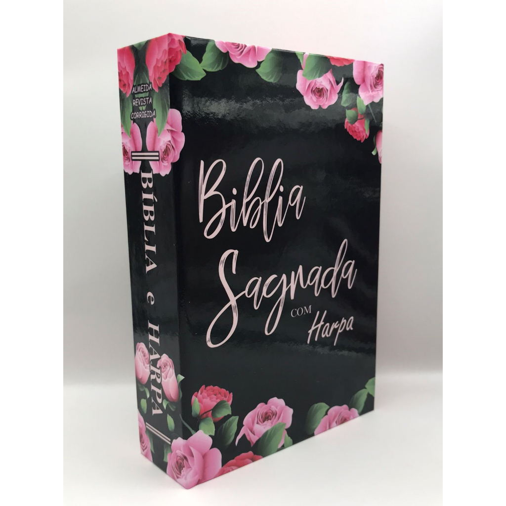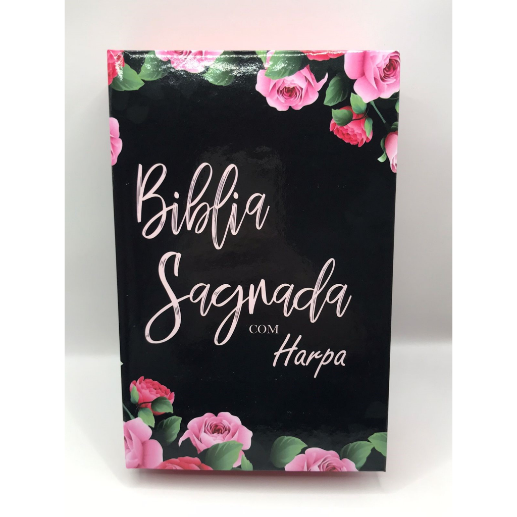 Bíblia Sagrada Tamanho Médio 12,5x19 cm Com Harpa palavras de Jesus em Vermelho Capa Dura Rosas Black