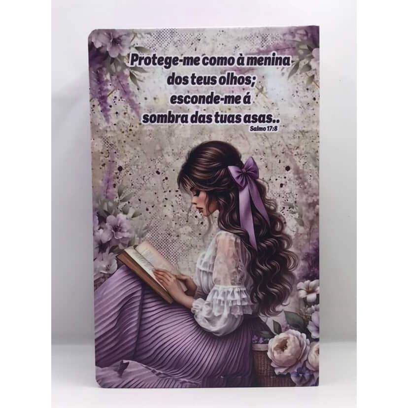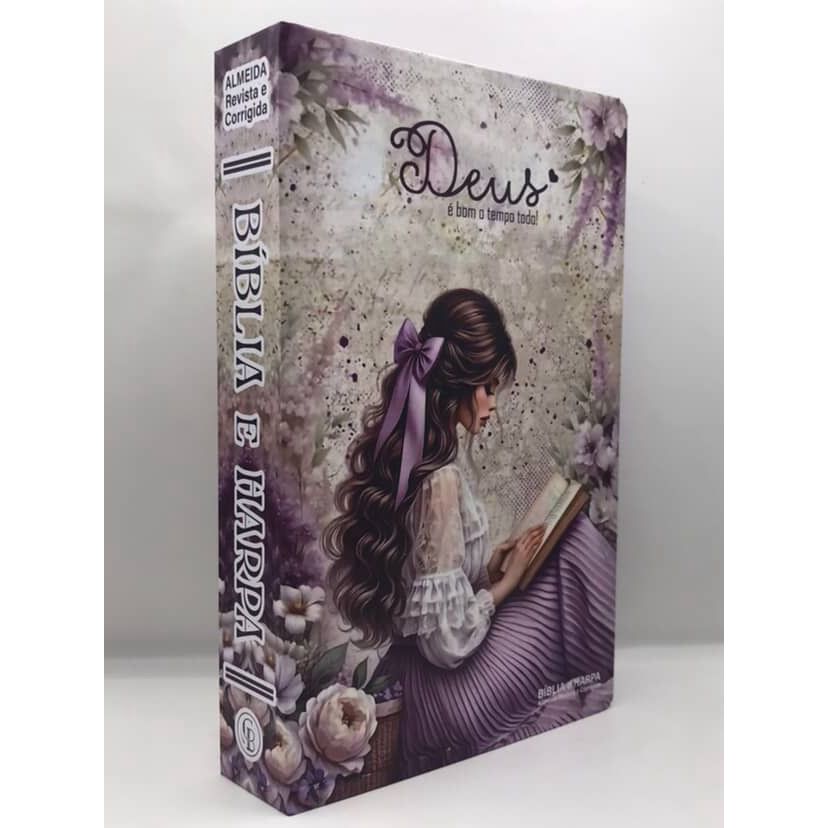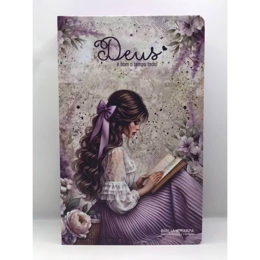 Bíblia Sagrada Tamanho Grande Capa Dura Com Harpa Palavras de Jesus em Vermelho Menina Laço Lilás