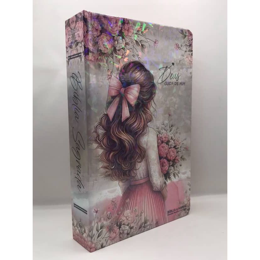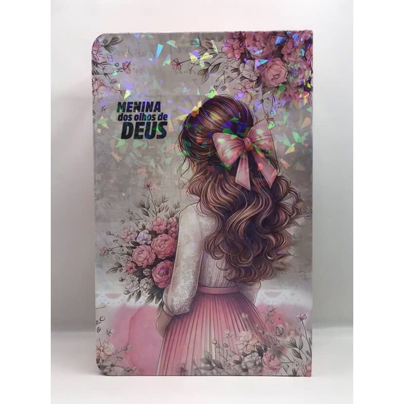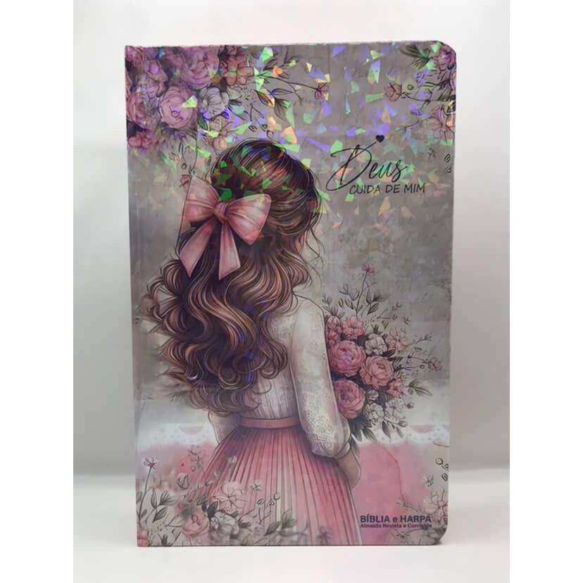 Bíblia Sagrada Tamanho Grande com Harpa Palavras de Jesus em Vermelho Capa Dura Cristais Rosas