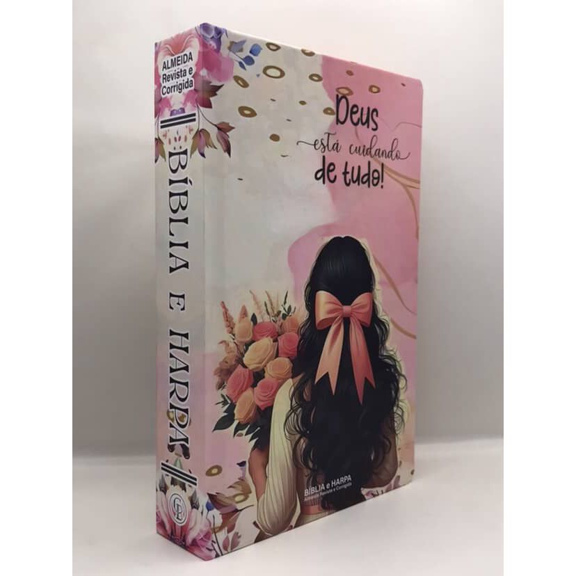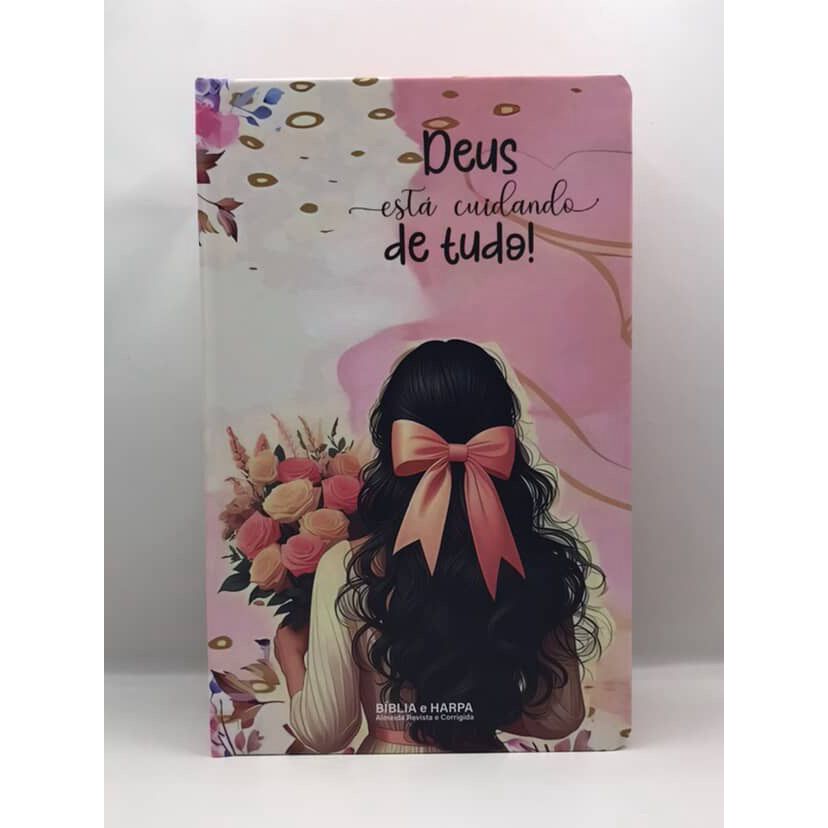 Bíblia Sagrada Tamanho Grande com Harpa Palavras de Jesus em Vermelho Capa Dura Menina Deus está cuidando