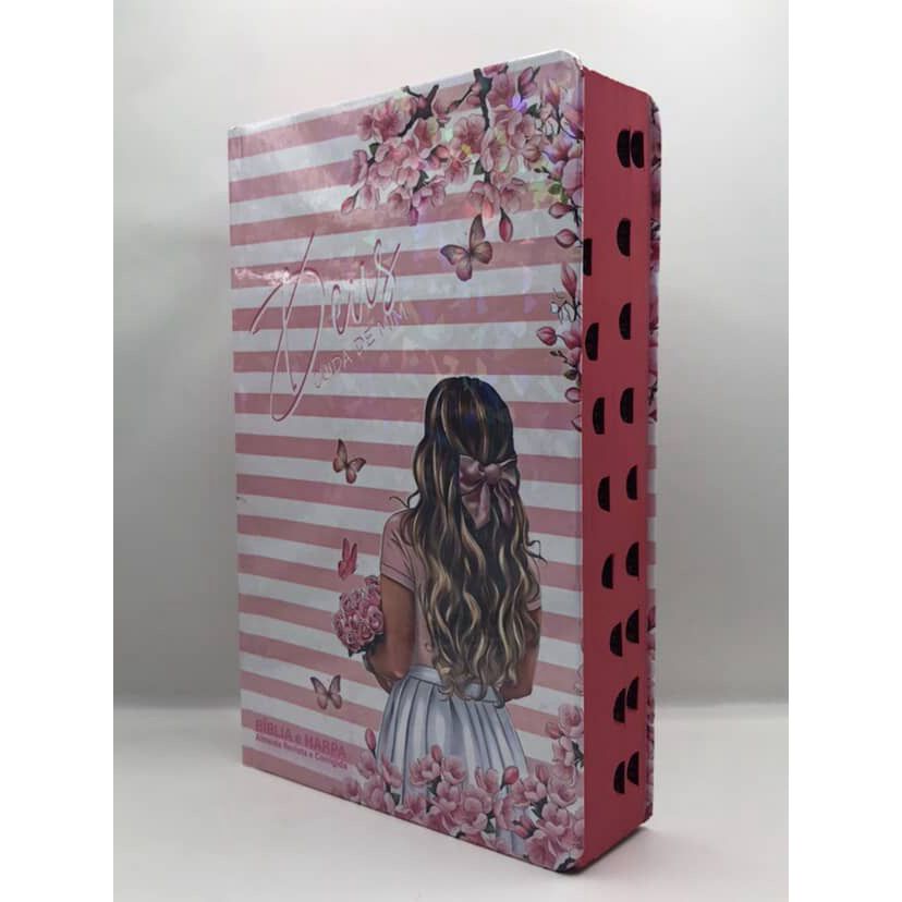 Bíblia Sagrada Tamanho Grande com Harpa Palavras de Jesus em Vermelho Capa Dura Cristais Borboletas