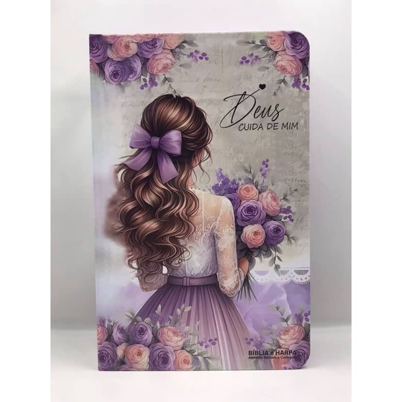 Bíblia Sagrada Tamanho Grande com Harpa Palavras de Jesus em Vermelho Capa Dura Menina Flor Lilás