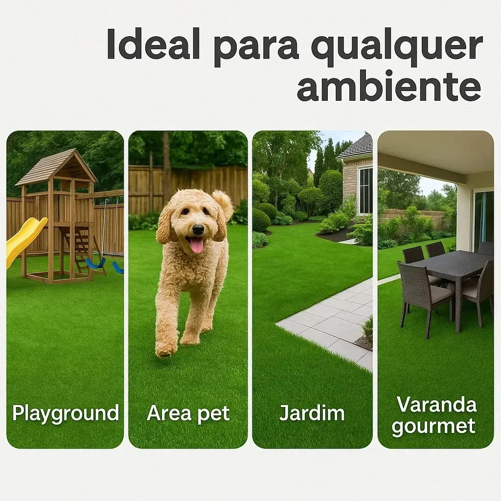 Tapete de Grama Sintética 12mm 20m² 10x2m Verde para Jardim Varanda Quintal Playground Interno Externo
