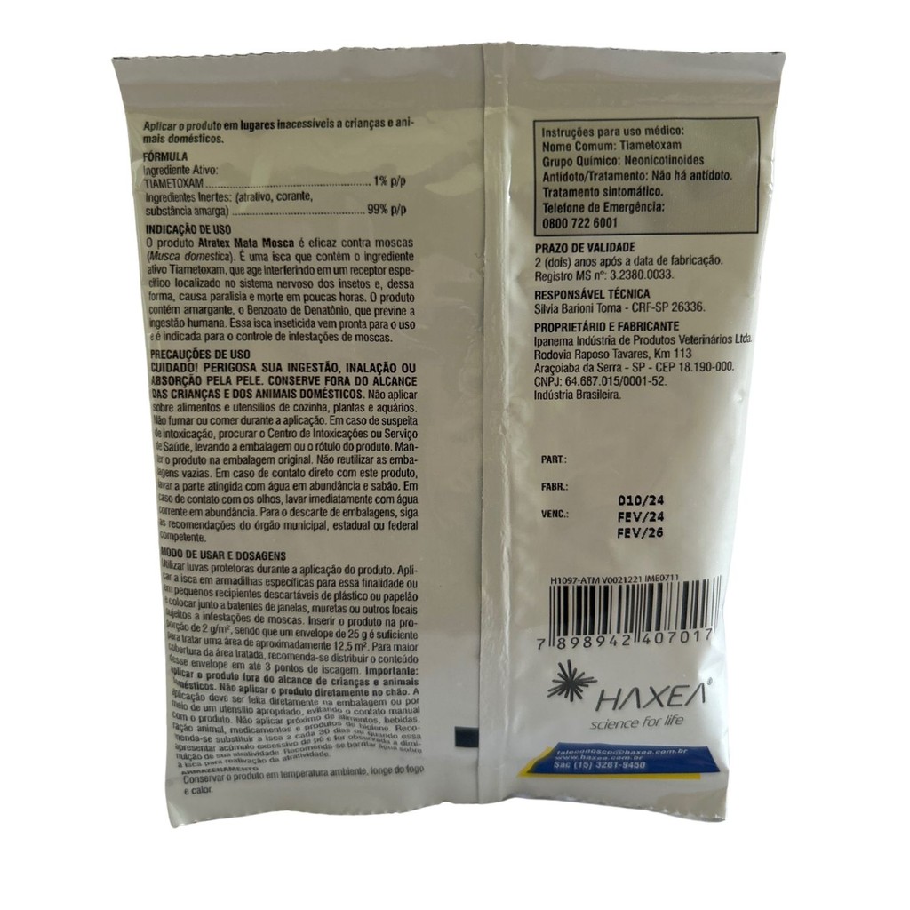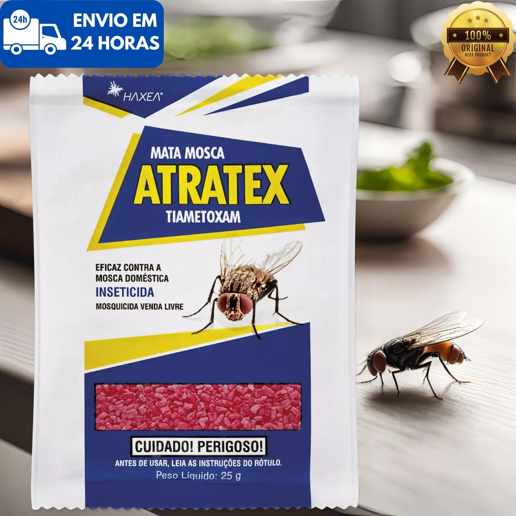 Kit com 6 Mosquicida Atratex Haxea Atrativo Sache Mata Mosca Granulado 25g