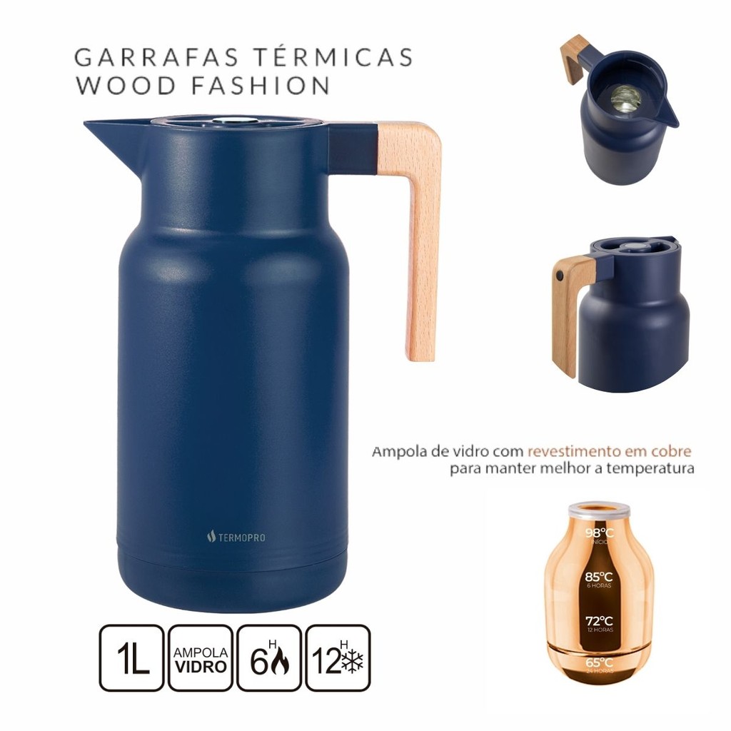 Garrafa Térmica Café Chá Suco Bule Térmico Azul 1 Litro Wood Fashion Termopro