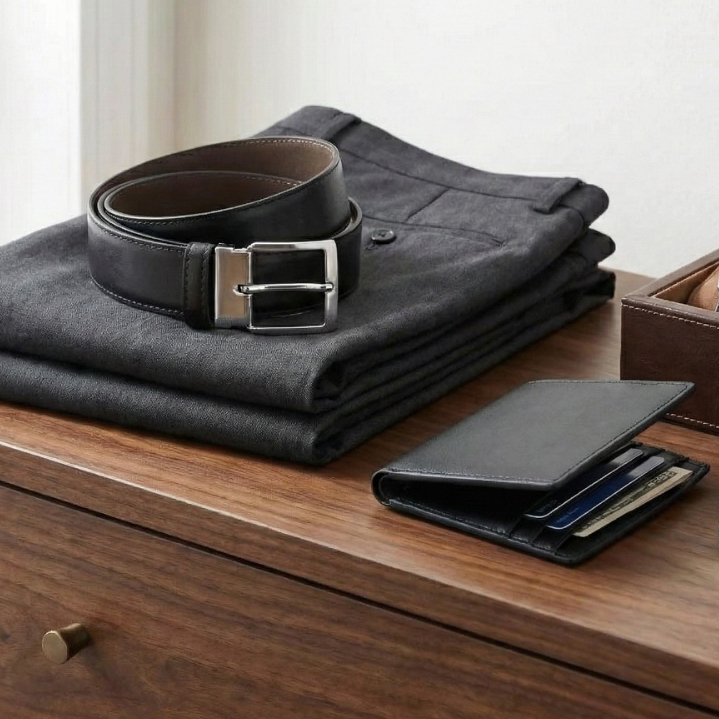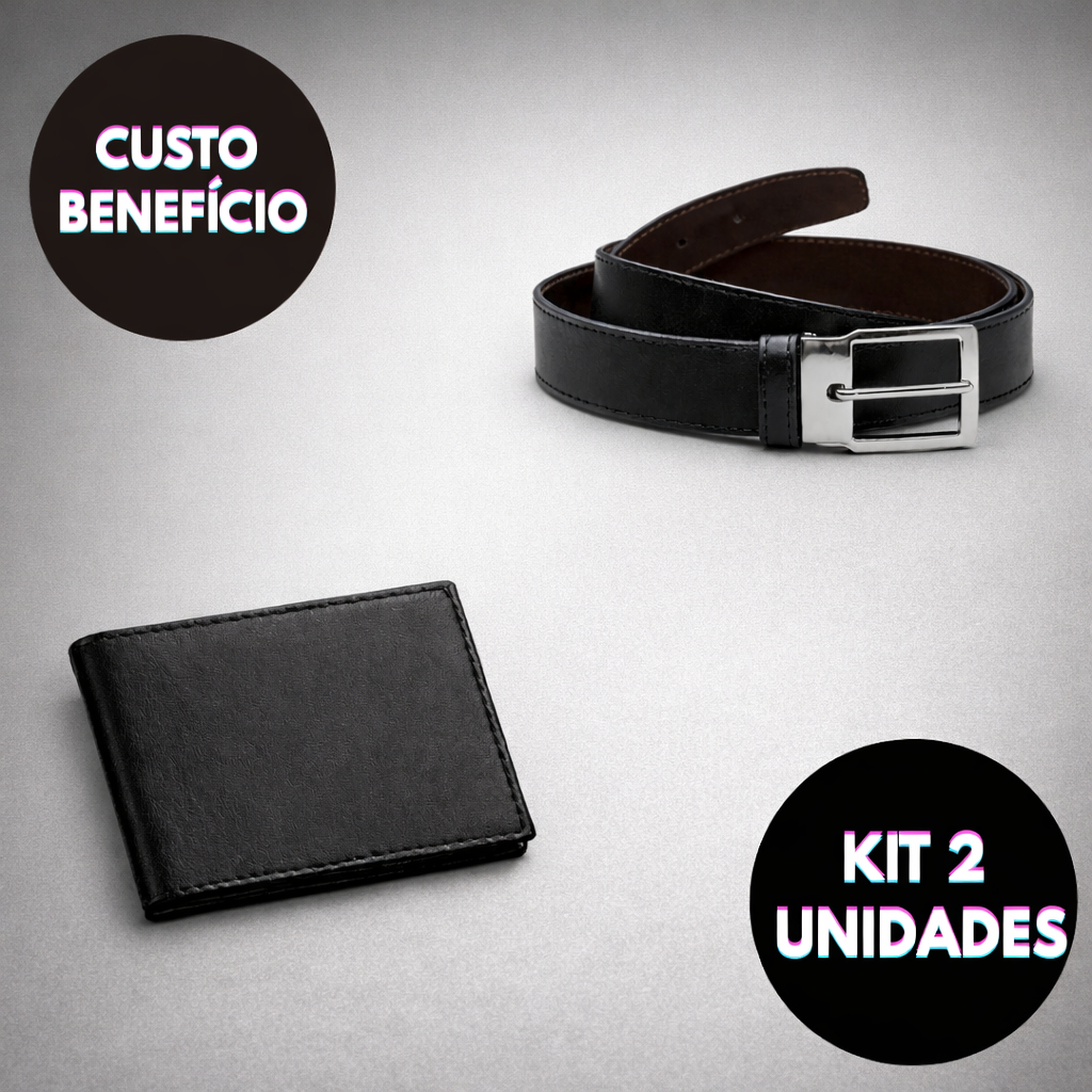 kit Cinto Masculino Social Dupla Face + Carteira Masculino Em Couro Ecológico