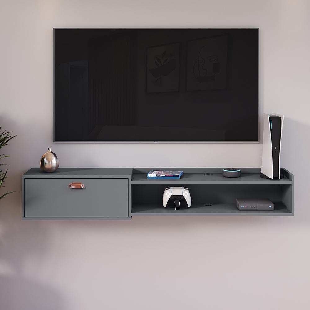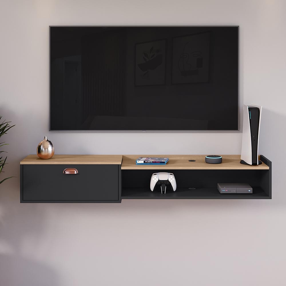 Rack Suspenso Sala Tv 1.50 cm Home Decoração Sala Quarto nicho 1 Porta para Tv's de até 55 Polegadas