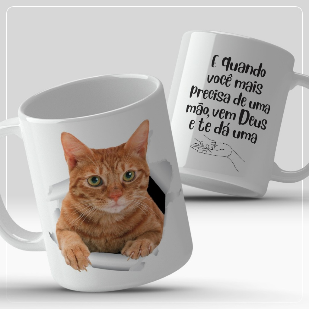 Caneca Personalizada Gato Em 3D E Quando Você Mais Precisa De Uma Mão ,Vem Deus E Te Dá Uma