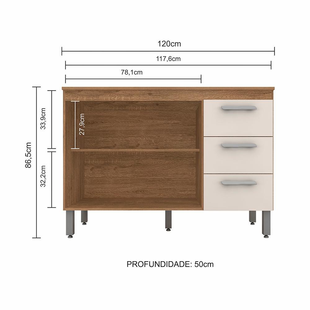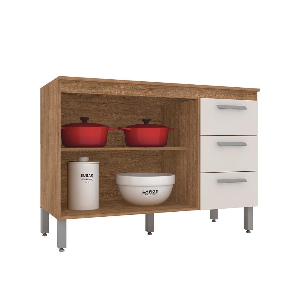 Balcão Para Pia Bella 2 Portas 3 Gavetas Carv/ Off White- M. Arapongas