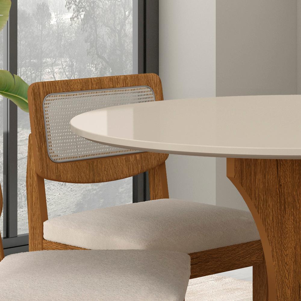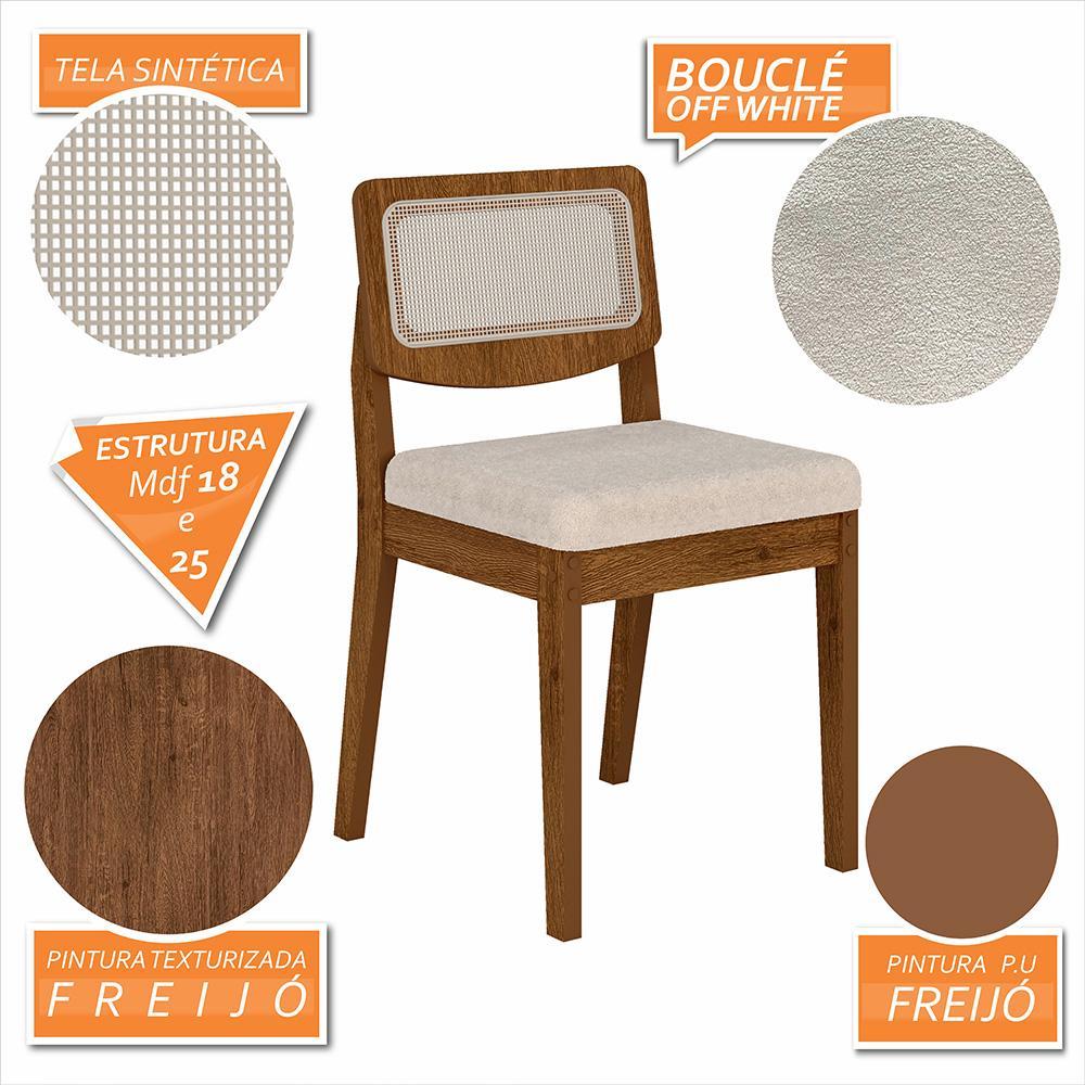 Mesa Linares Com 4 Cadeiras Sextavada Freijó/off/bouclé Off White - Ma
